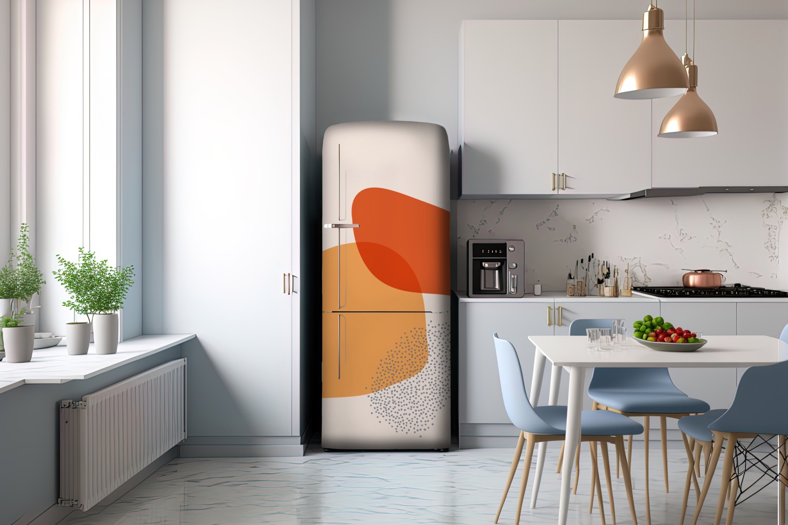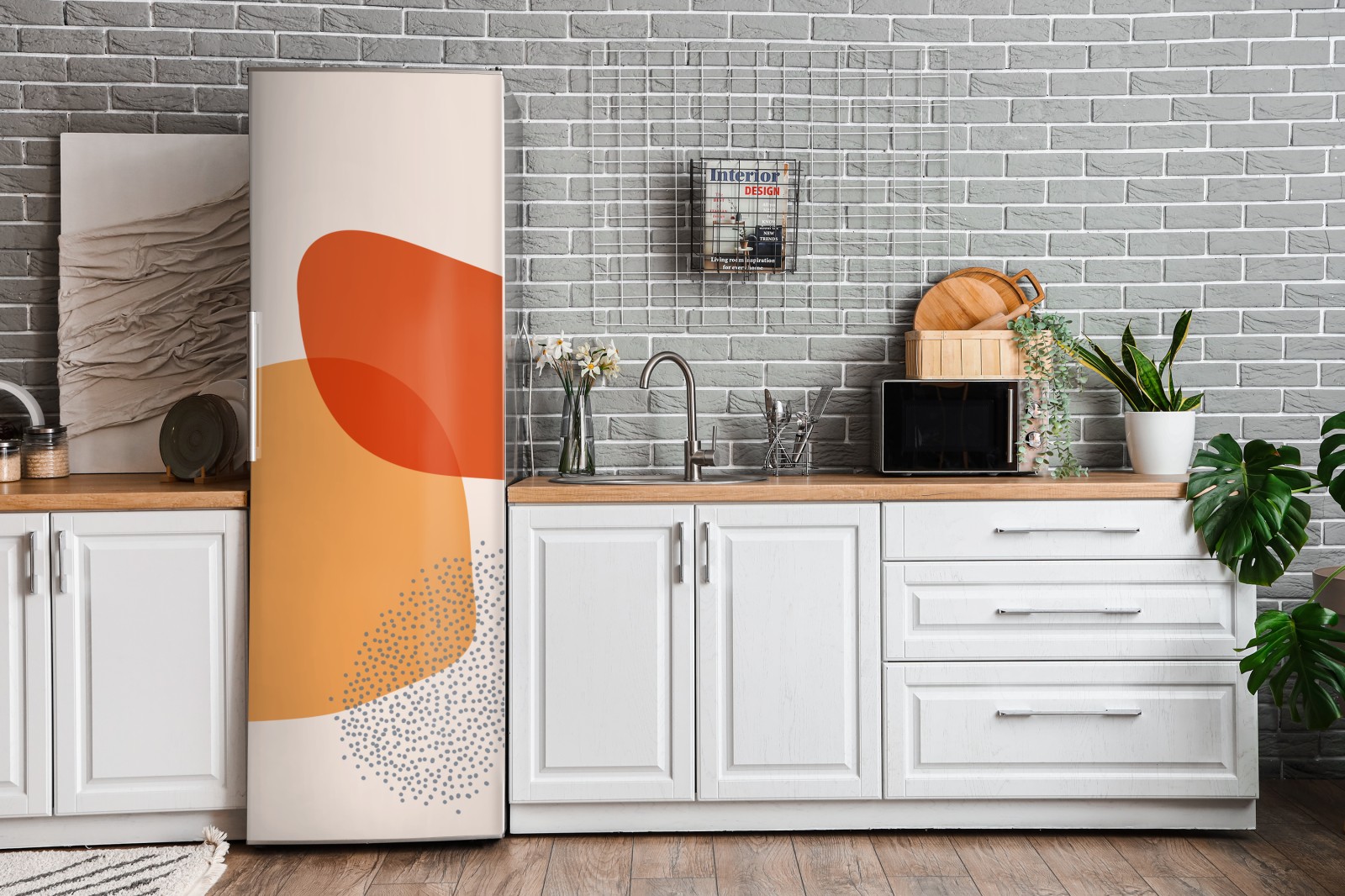 Verleihen Sie Ihrem Raum modernen Minimalismus mit warmen abstrakten Formen und feiner Punktstruktur.