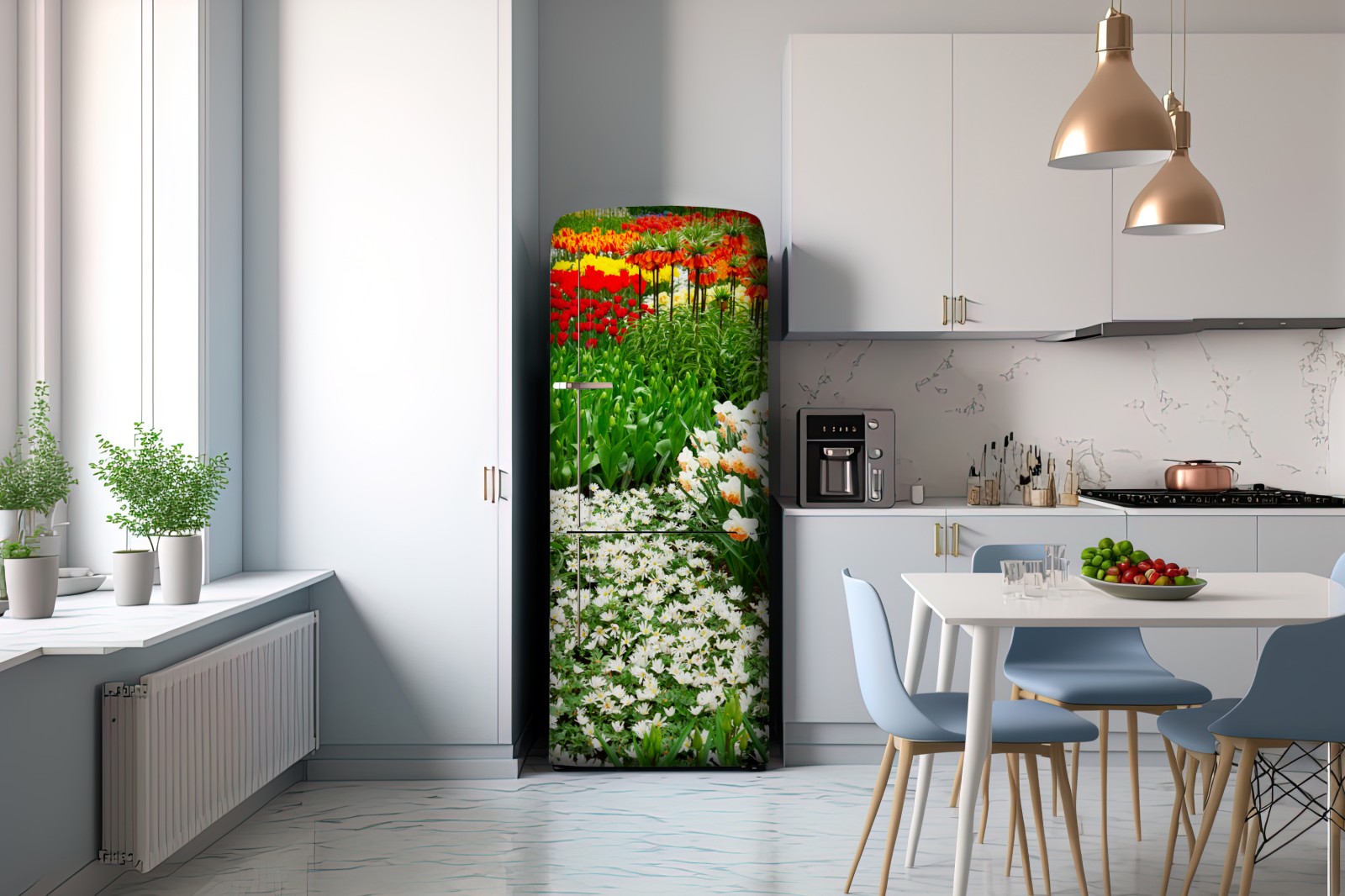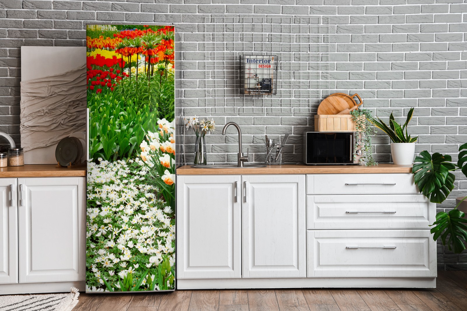 Kühlschrankaufkleber lebendiger frühlingsblumengarten