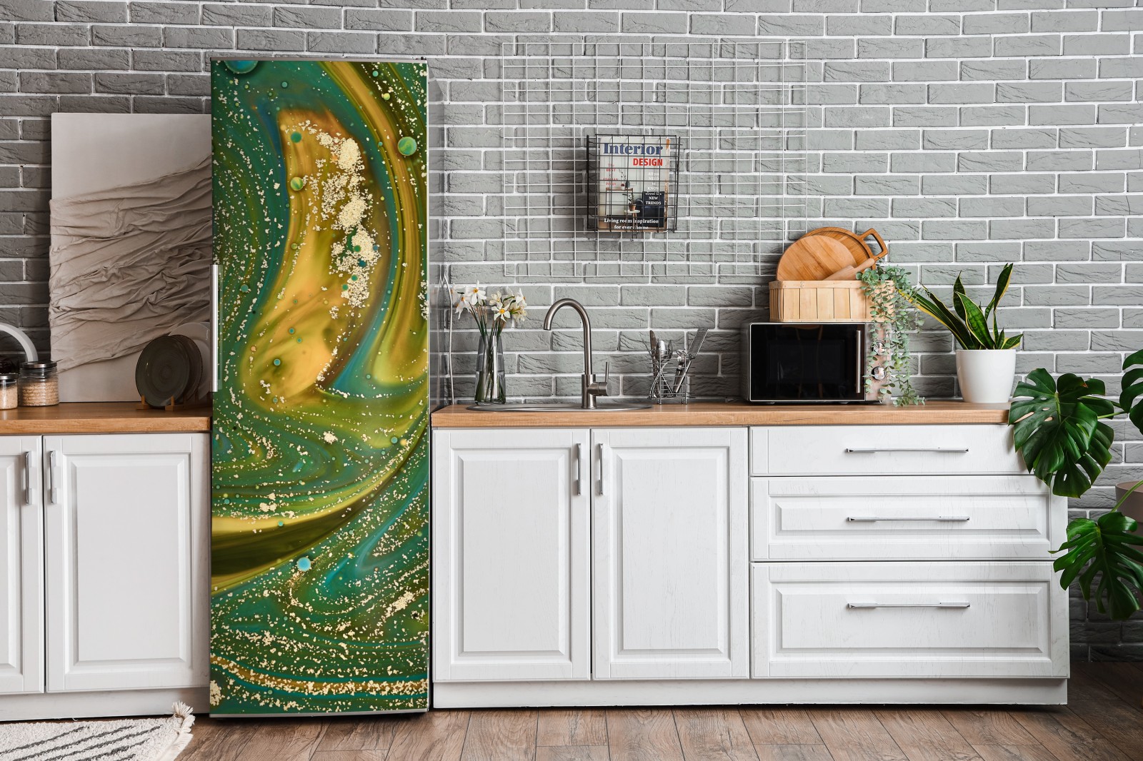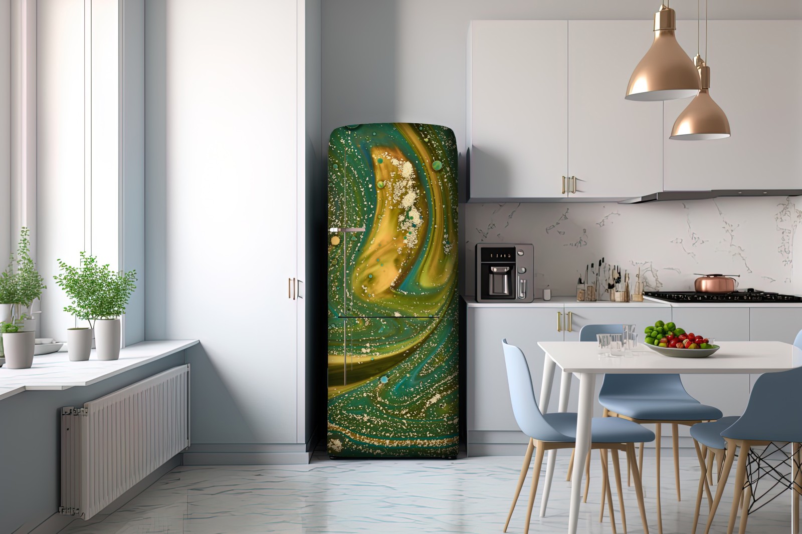 Kühlschrankaufkleber grün-goldene flüssige marmorierte kunst