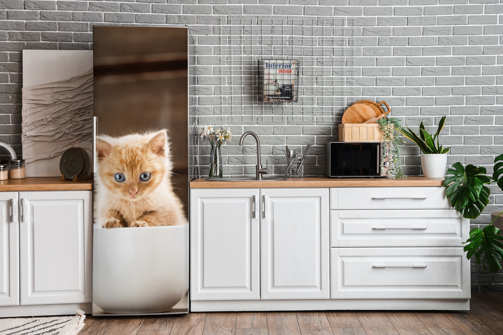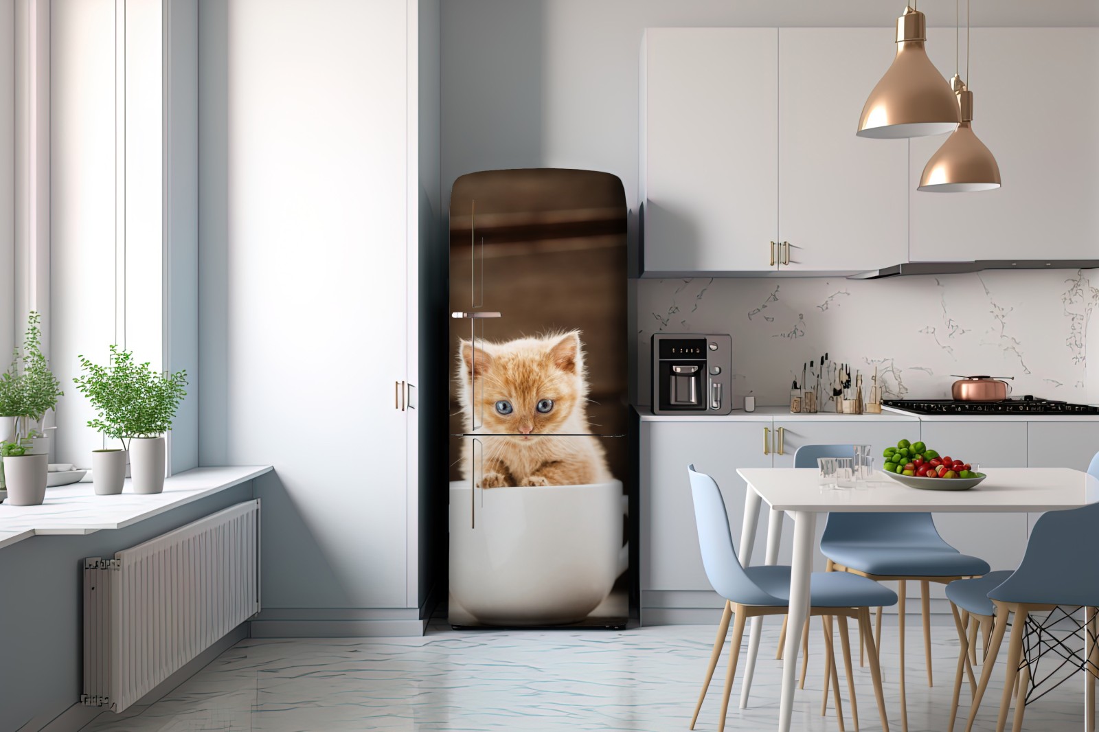 Kühlschrankaufkleber rötliches kätzchen in einer teetasse