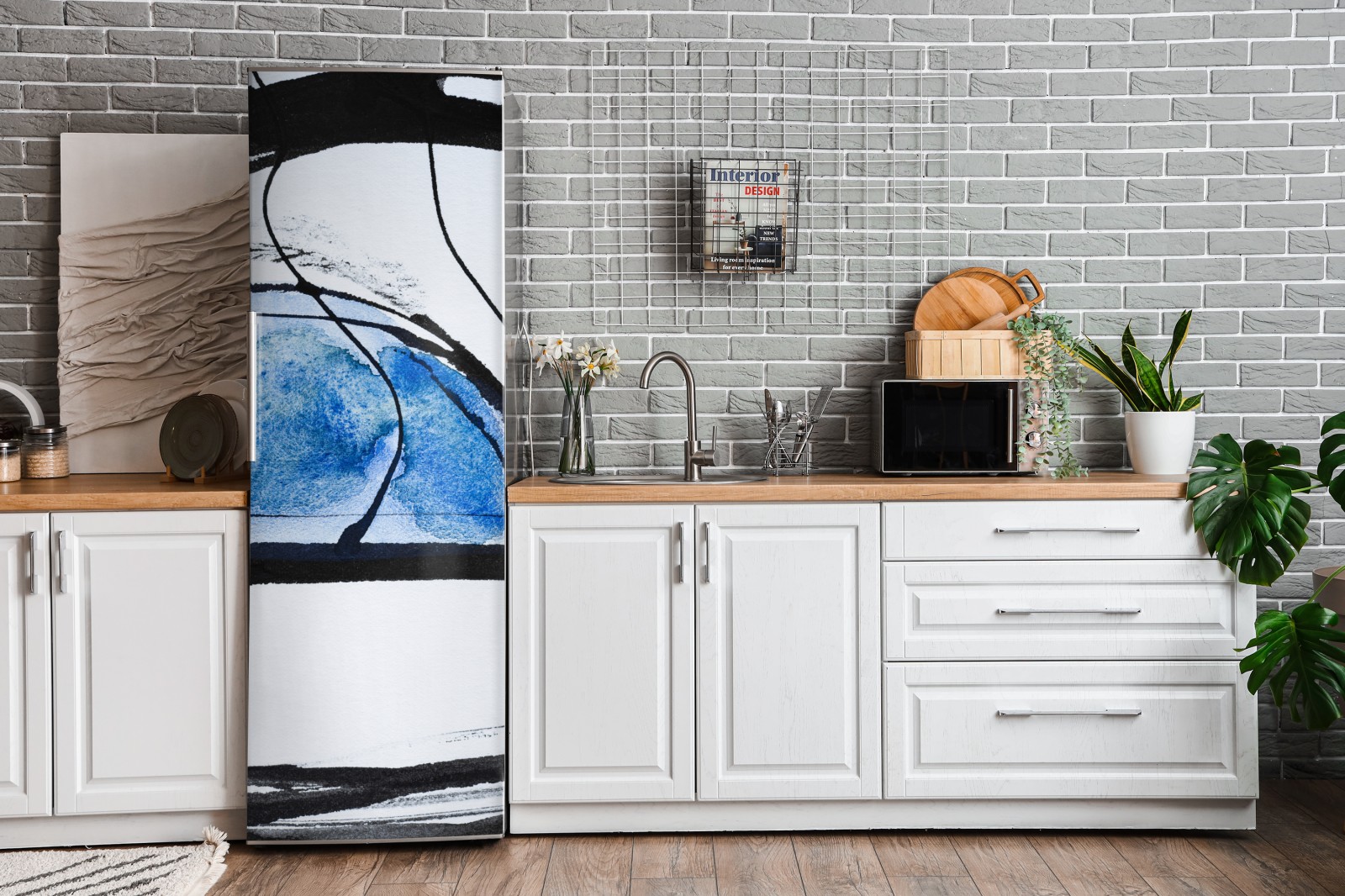 Kühlschrankaufkleber blaue abstrakte tusche- und aquarellkomposition