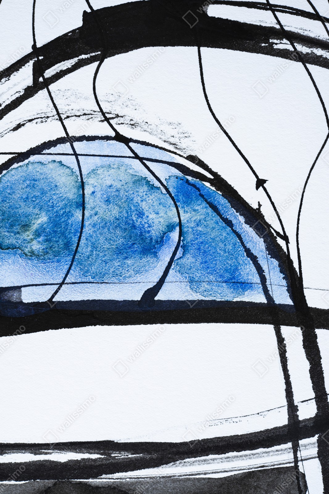 Elegante abstrakte Aquarell- und Tuschekomposition in Blau- und Schwarztönen, ideal für moderne Wohnräume.