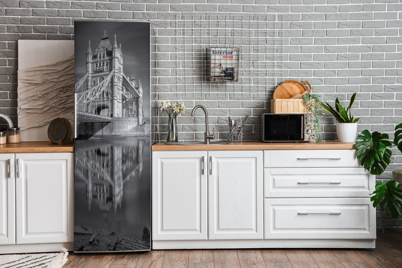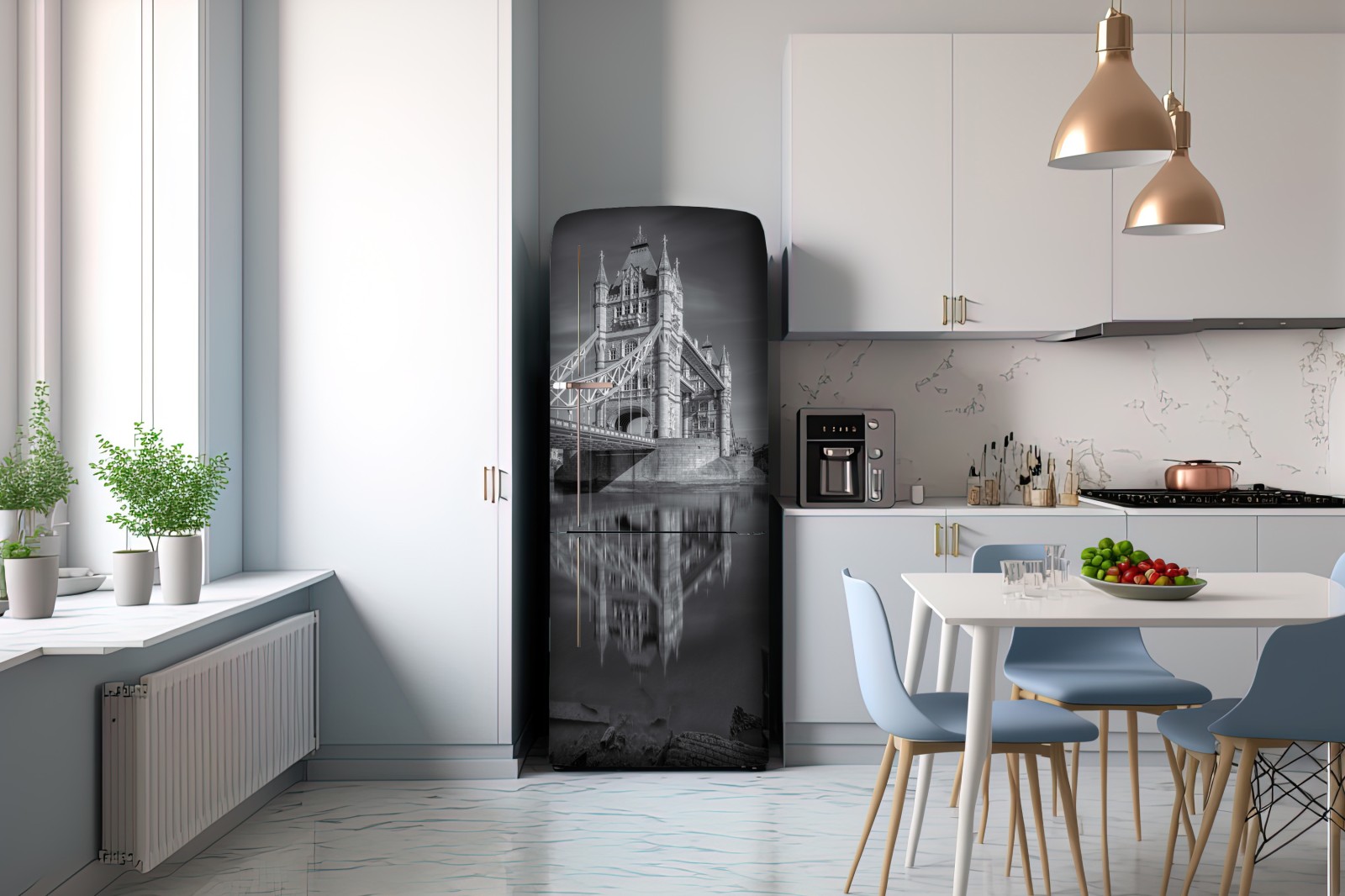 Kühlschrankaufkleber Tower Bridge reflektiert in schwarzweiß