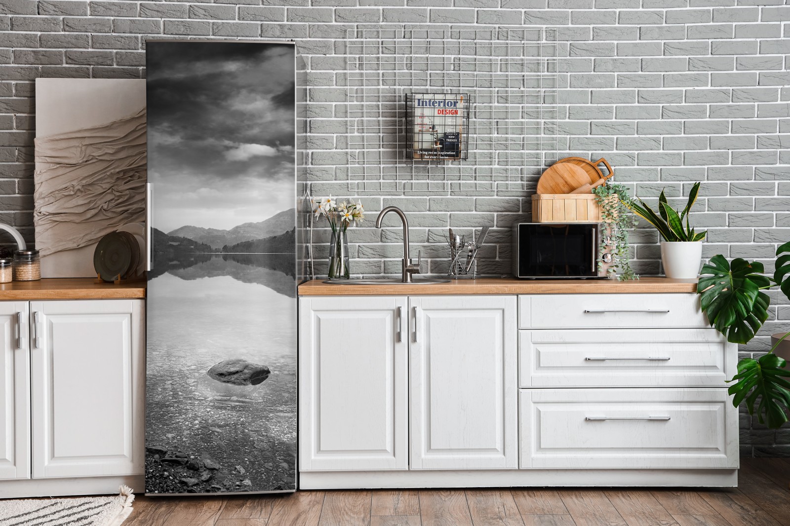 Kühlschrankaufkleber ruhiger bergsee mit spiegelung