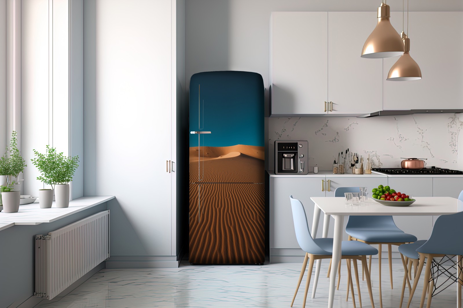 Kühlschrankaufkleber goldene sanddünen unter tiefblauem himmel