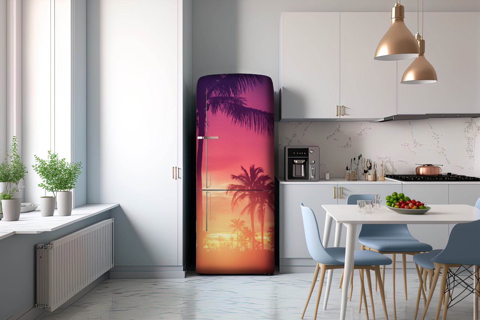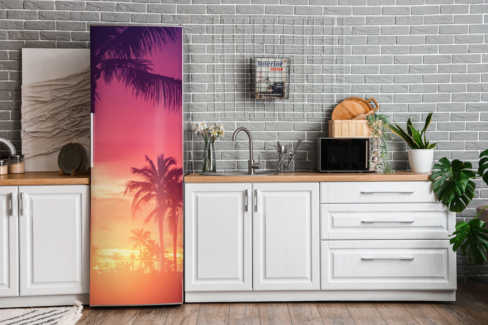 Kühlschrankaufkleber tropischer sonnenuntergang mit palmen