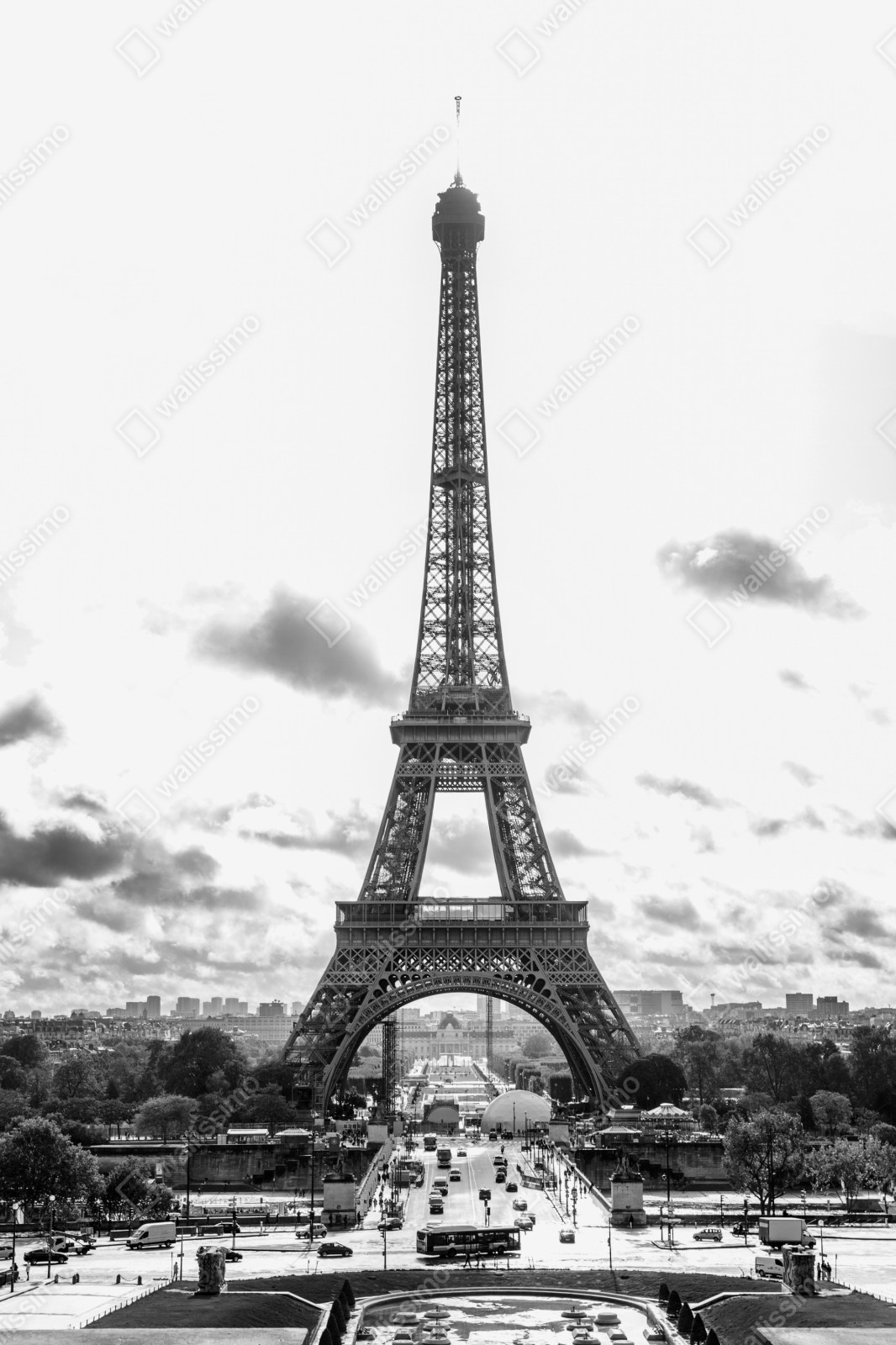 Fangen Sie die zeitlose Eleganz von Paris mit diesem eindrucksvollen schwarz-weißen Foto des Eiffelturms ein, ideal um jedem Raum architektonischen Charme zu verleihen.