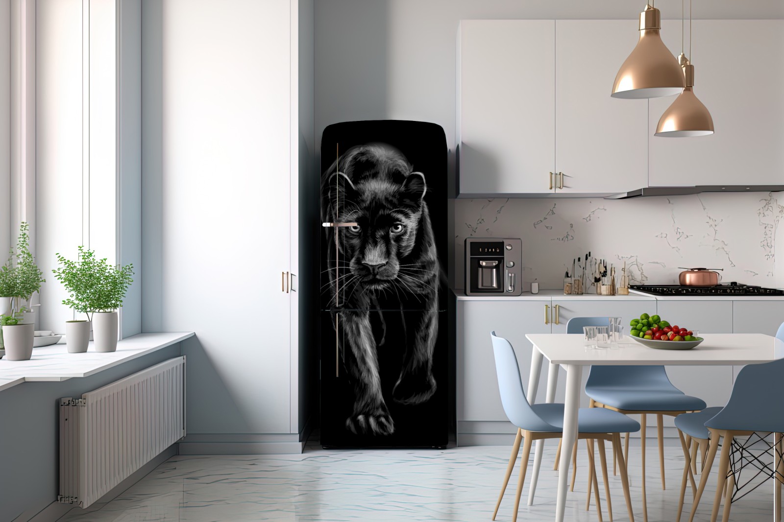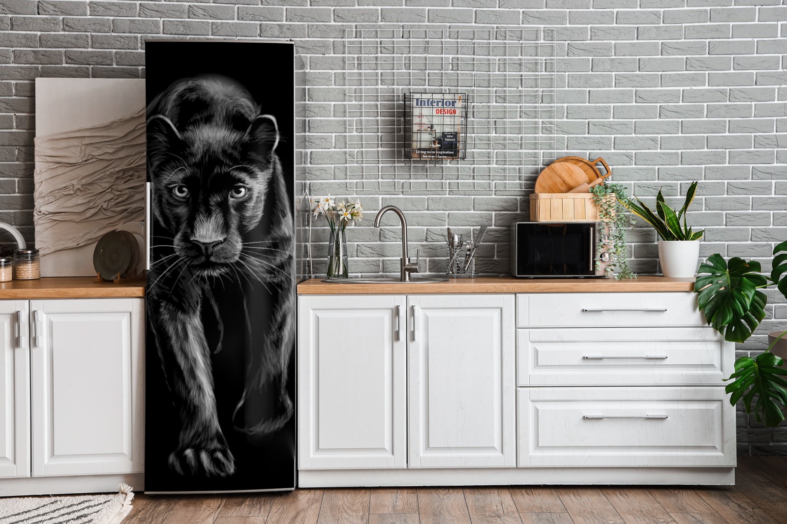Kühlschrankaufkleber schreitender schwarzer panther illustration