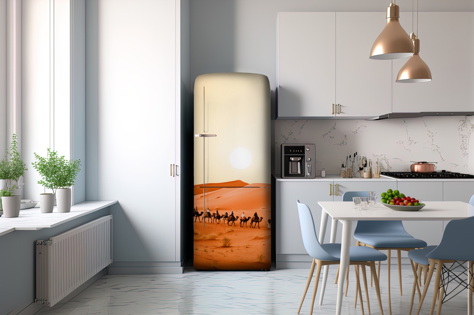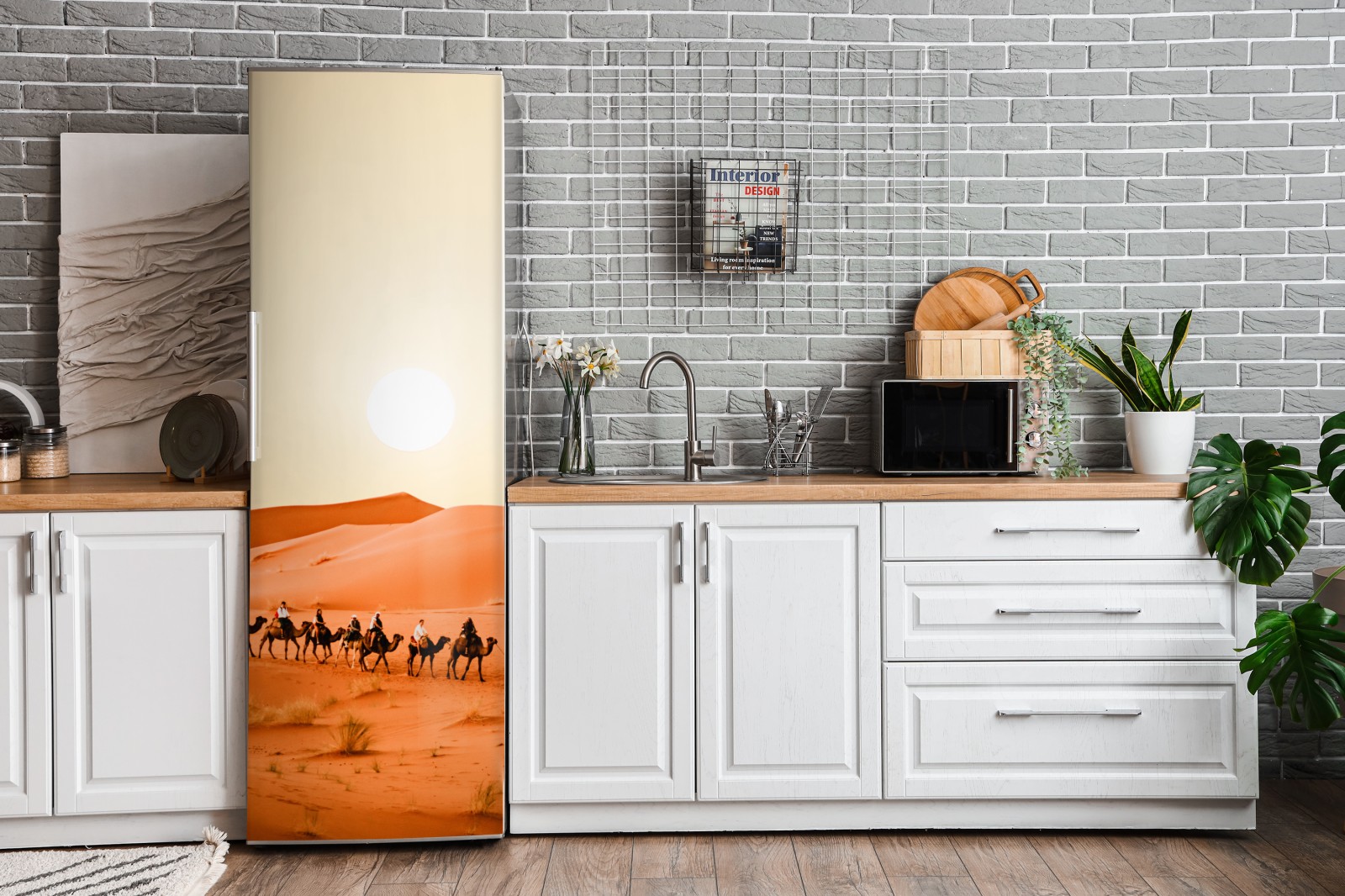 Kühlschrankaufkleber karawane von kamelen in der wüste bei sonnenuntergang