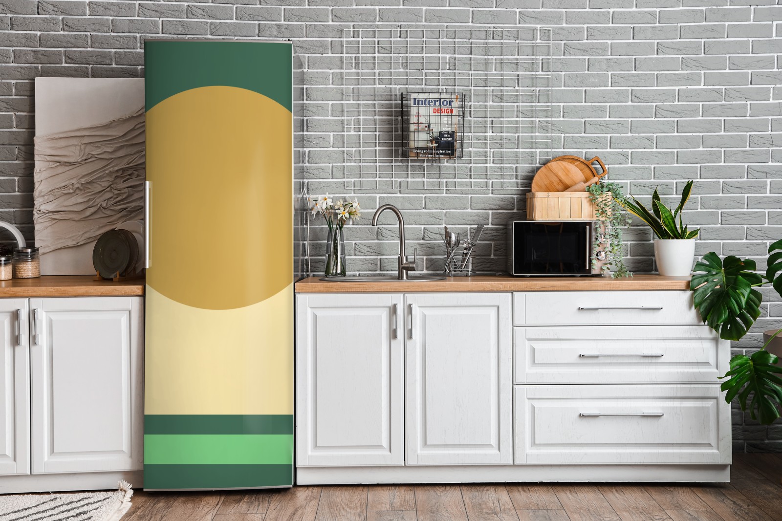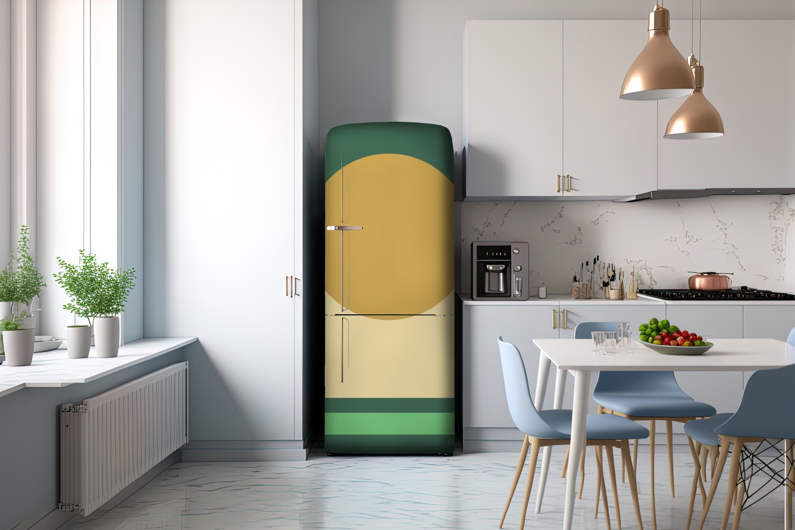 Kühlschrankaufkleber goldene sonne über geometrischem block