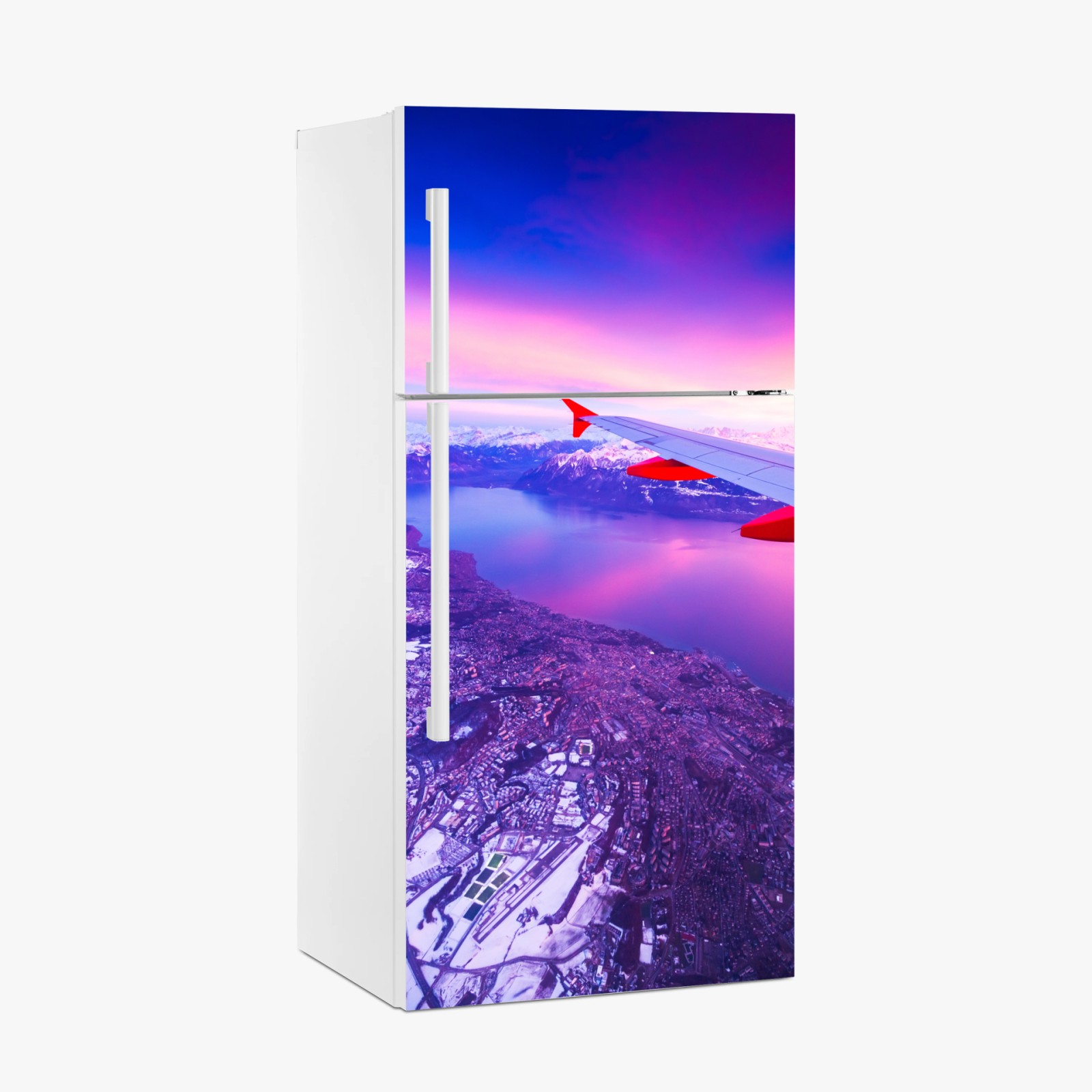 Kühlschrankaufkleber Luftaufnahme einer stadt am see bei sonnenuntergang