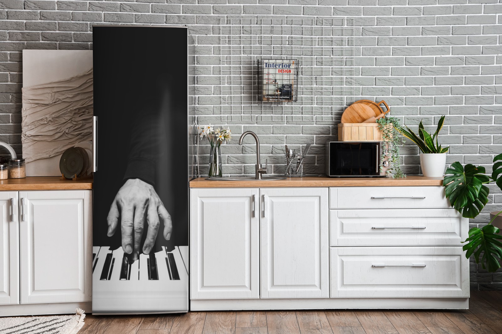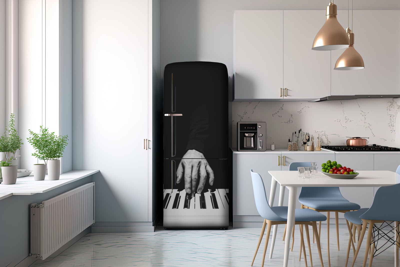 Kühlschrankaufkleber monochromes nahaufnahme einer hand am klavier