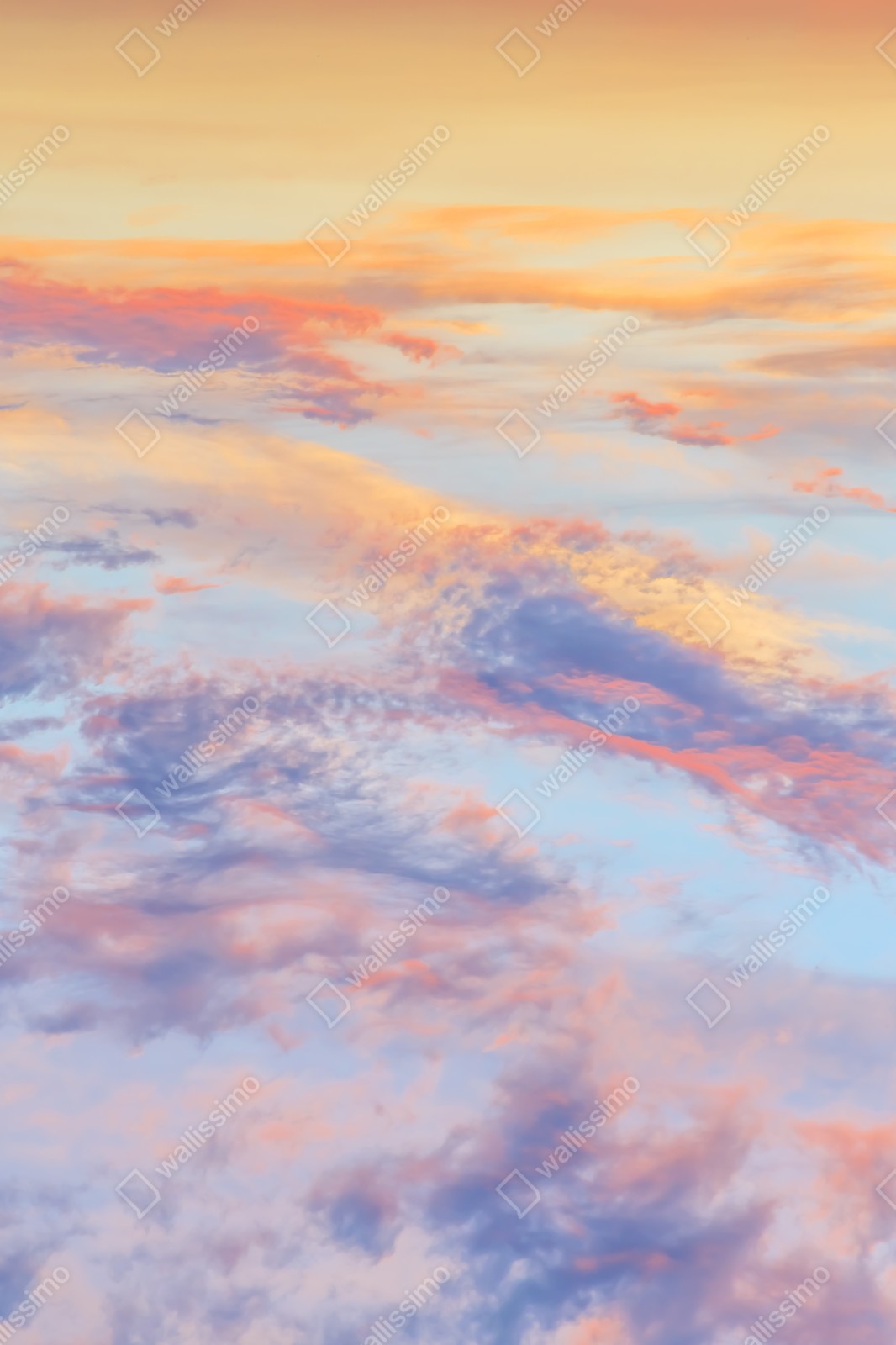 Bringen Sie Ruhe und Wärme in Ihr Zuhause mit diesem sanften Pastellhimmel bei Sonnenaufgang, der weiche Orange- und Blautöne für eine friedliche Atmosphäre zeigt.