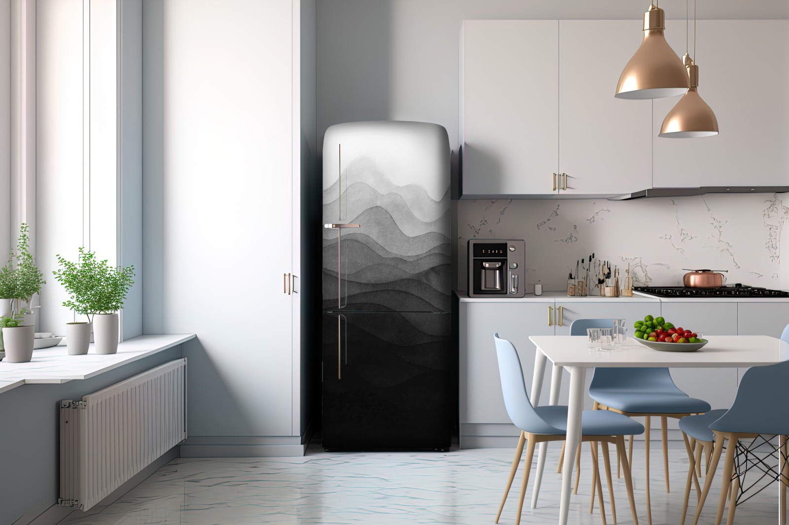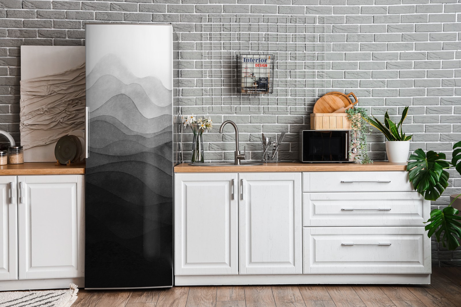 Verleihen Sie Ihrem Raum Ruhe mit diesem monochromen, geschichteten Bergmotiv, ideal für minimalistische Einrichtung.