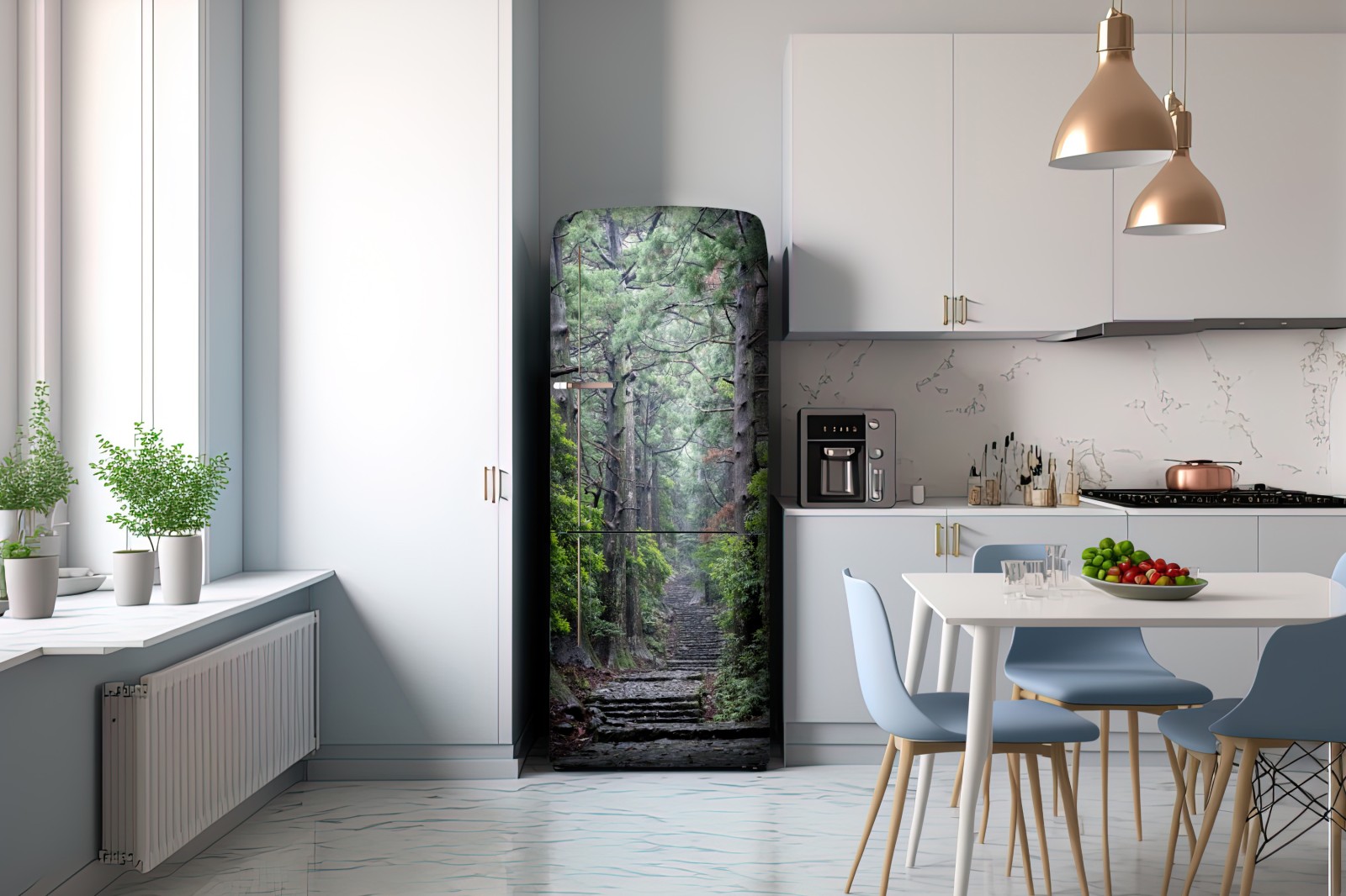 Kühlschrankaufkleber mystischer waldweg zwischen alten bäumen