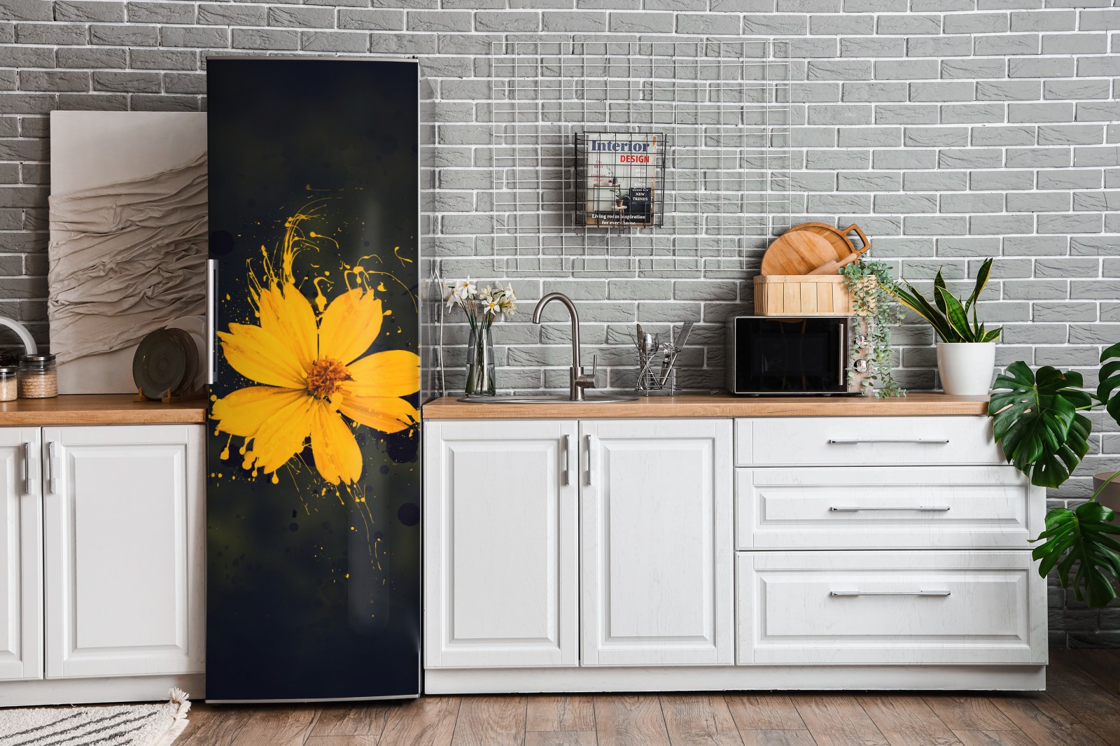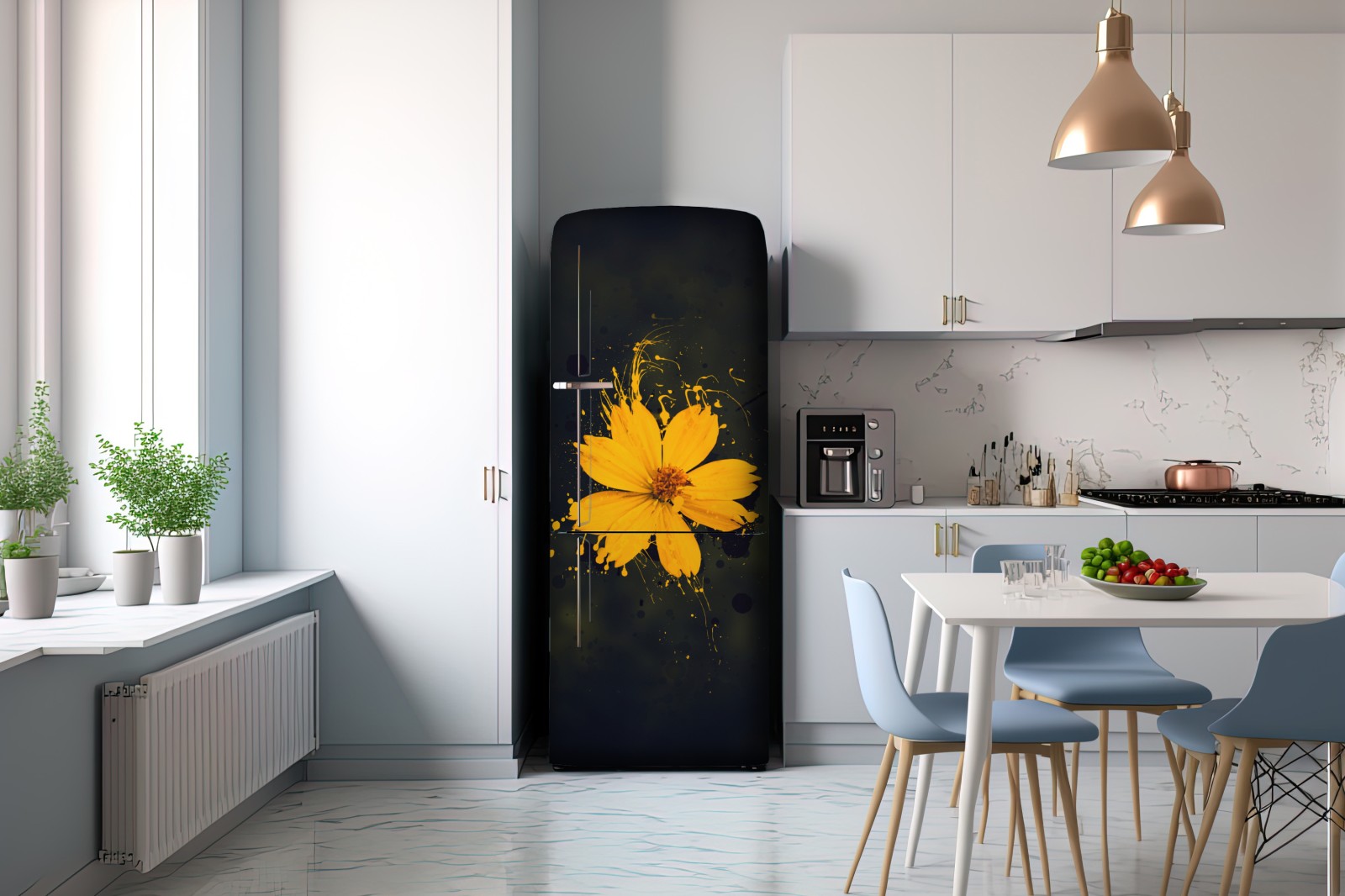 Kühlschrankaufkleber leuchtende gelbe blüte auf dunklem hintergrund