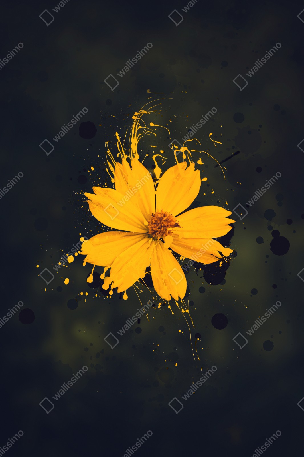 Verleihen Sie Ihrem Raum kontrastreichen botanischen Charme mit dieser leuchtenden Darstellung einer gelben Blüte, ideal für moderne Einrichtungen.