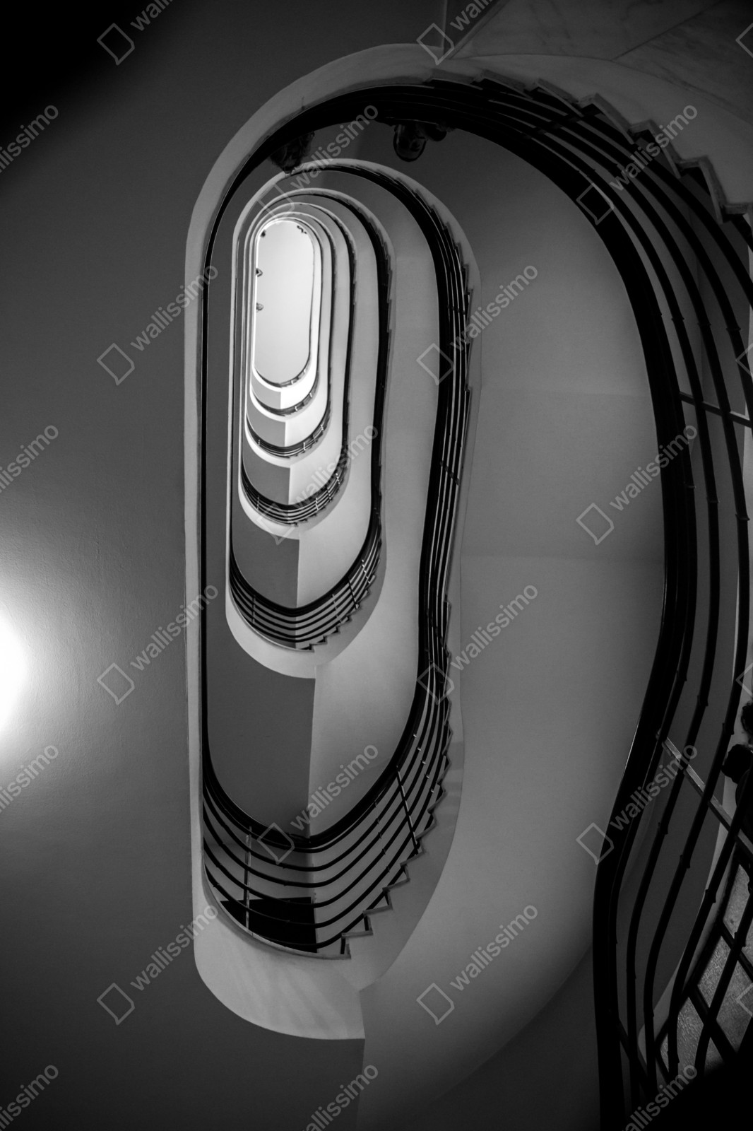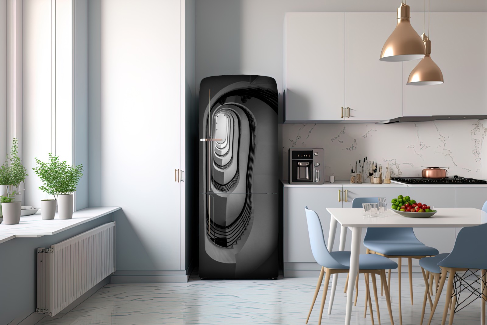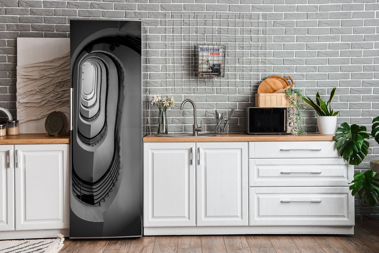 Kühlschrankaufkleber spiraltreppe perspektive in schwarzweiß