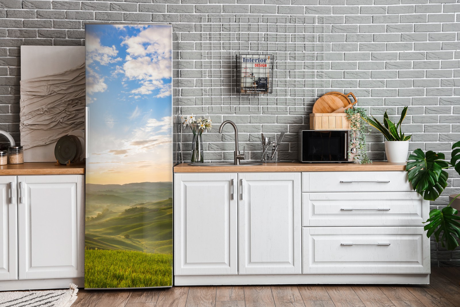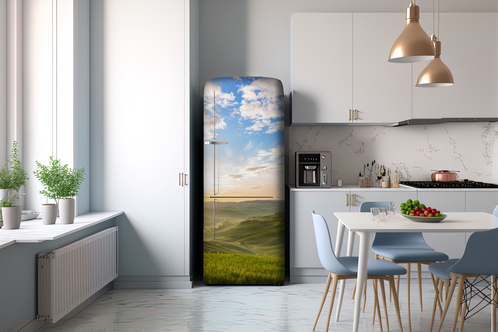 Kühlschrankaufkleber sonnenaufgang über nebligen hügeln