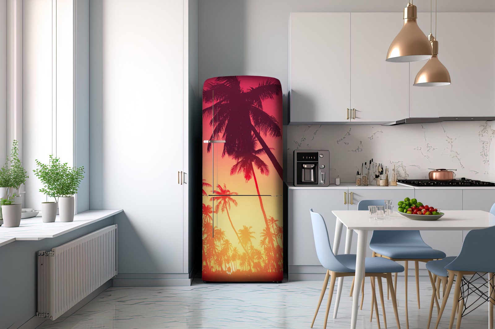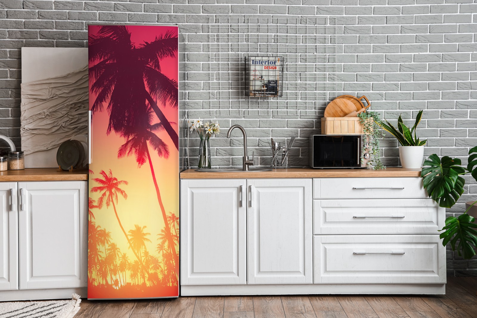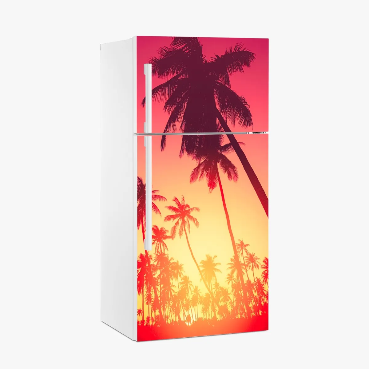 Kühlschrankaufkleber tropischer sonnenuntergang mit palmen