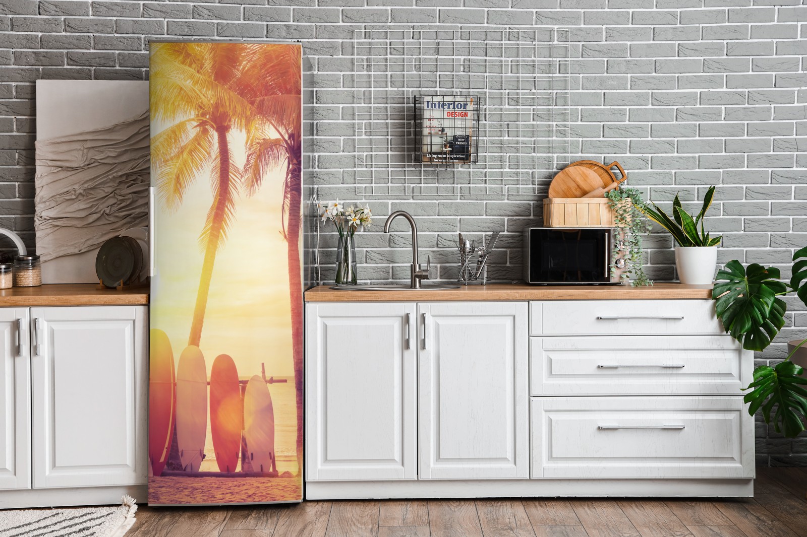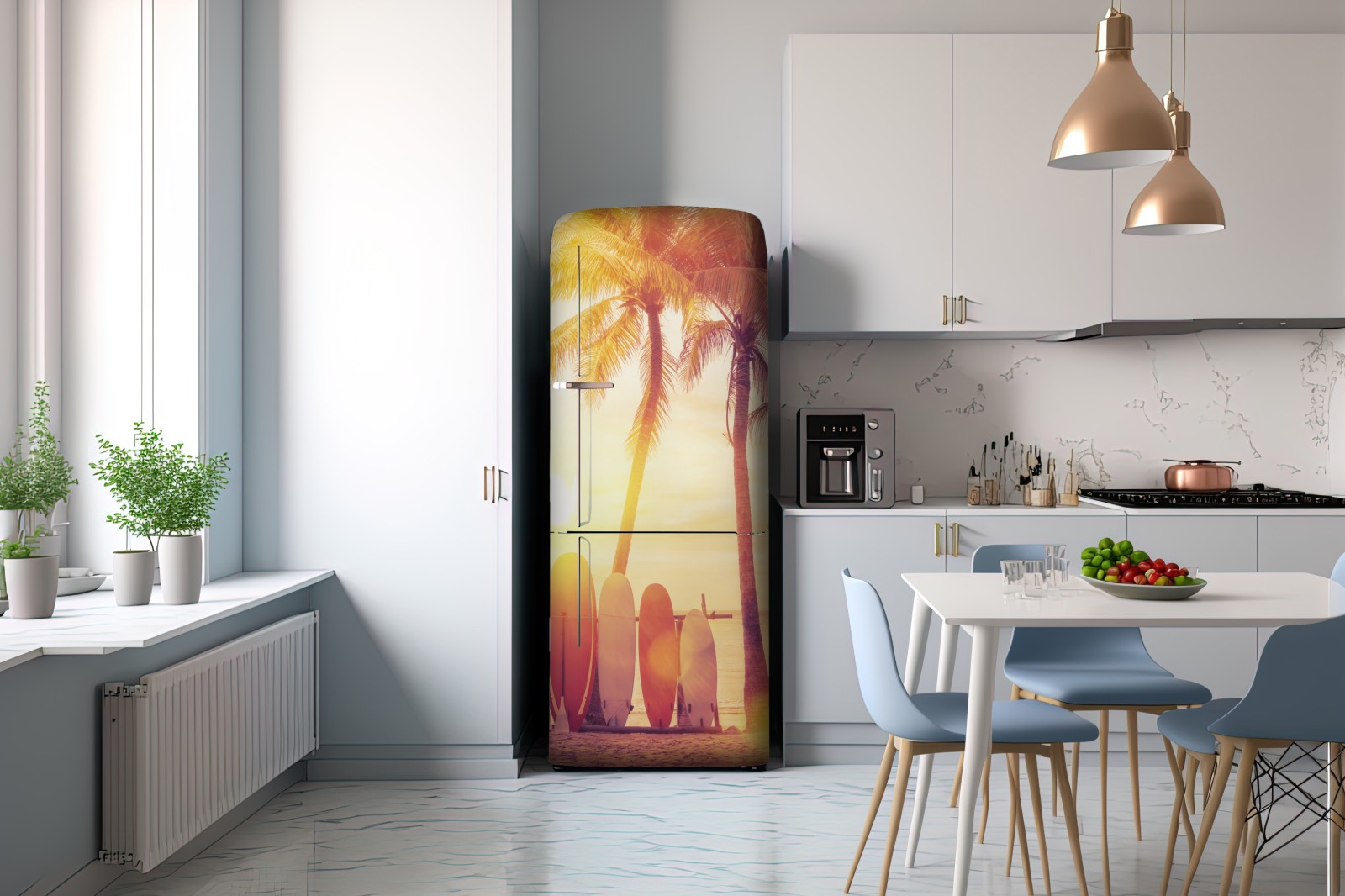 Kühlschrankaufkleber tropischer sonnenuntergang mit surfboards