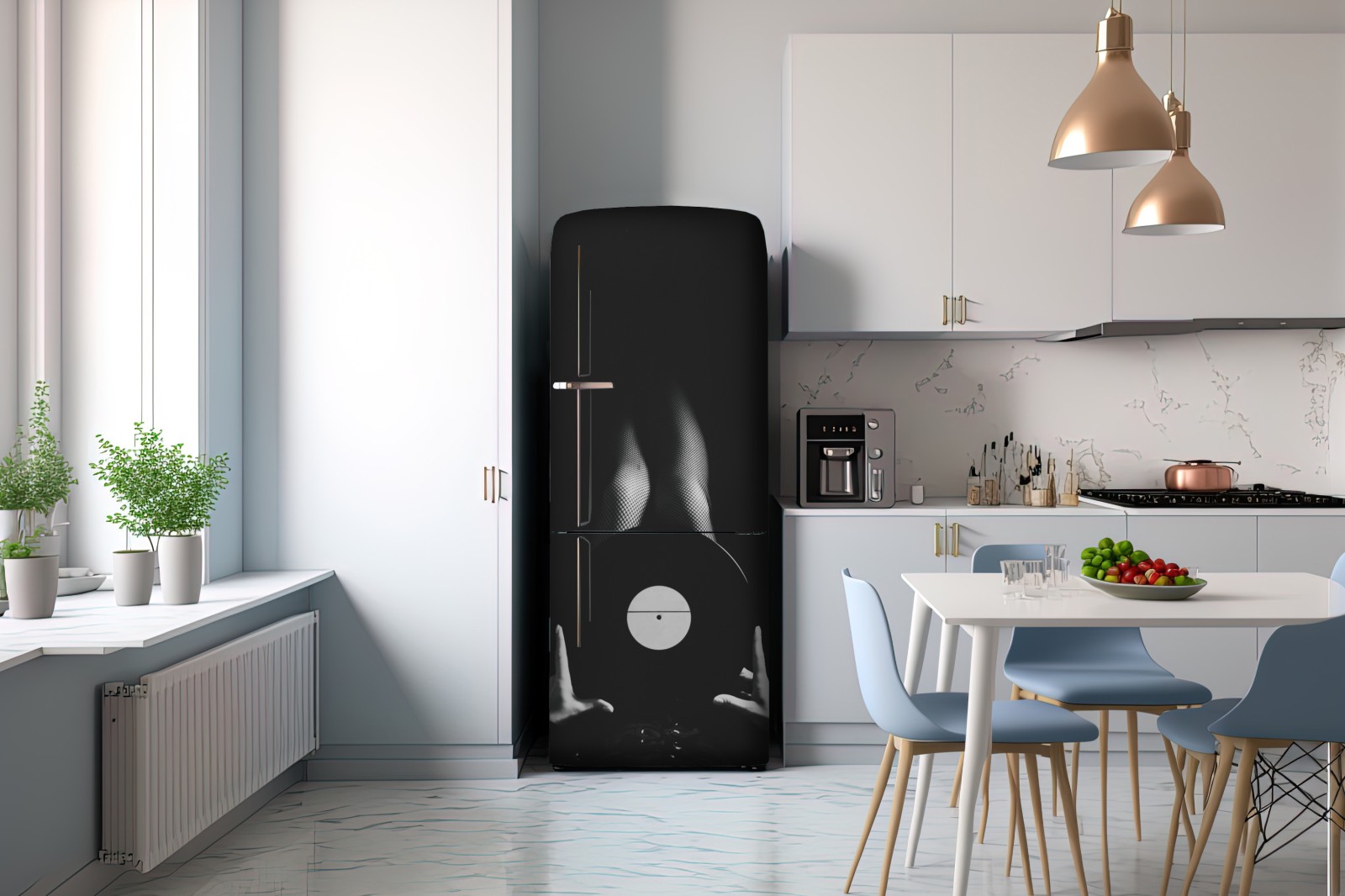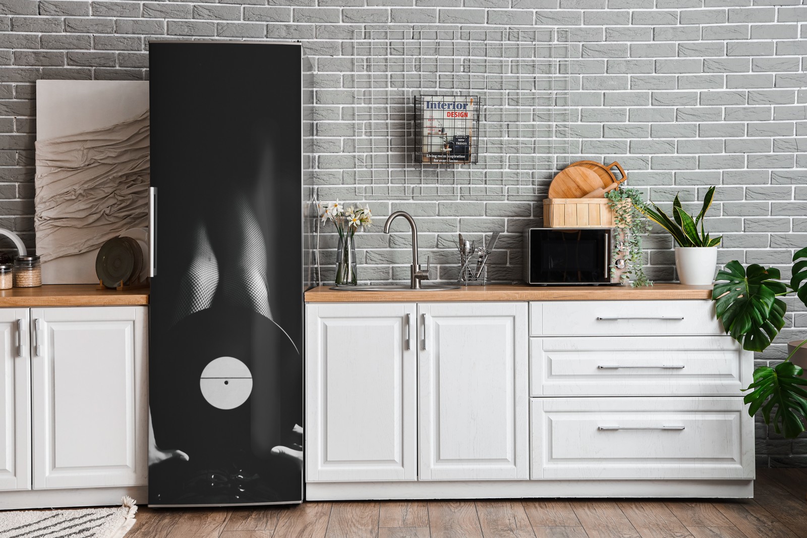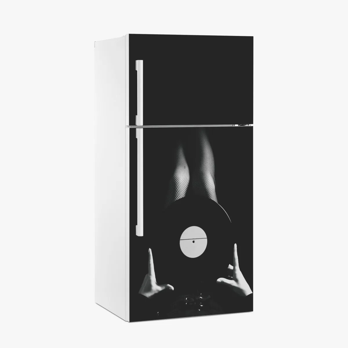 Kühlschrankaufkleber schallplatte und beine in netzstrümpfen