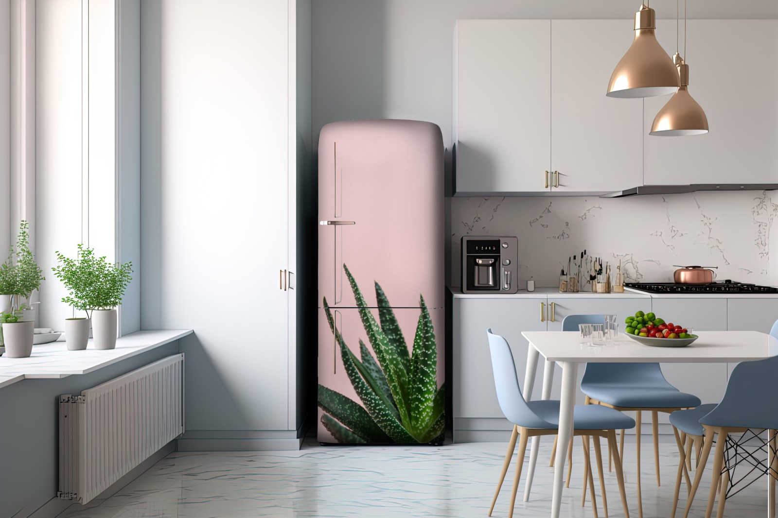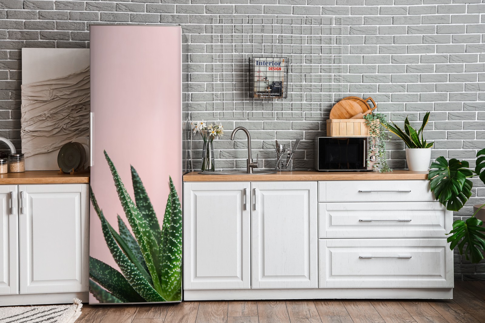 Kühlschrankaufkleber grüner aloes auf rosa hintergrund