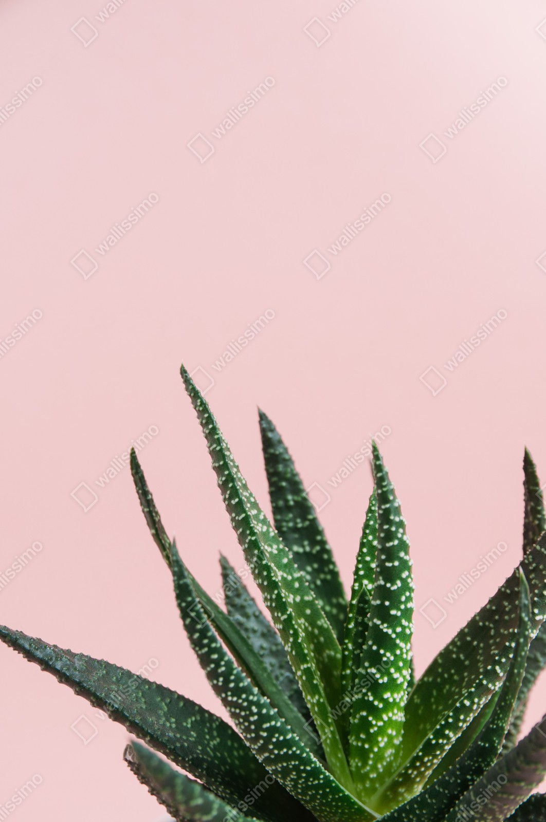 Fügen Sie mit einem lebendigen Aloe-Druck auf einem zarten rosa Hintergrund einen frischen, modernen Akzent zu Ihrem Raum hinzu.