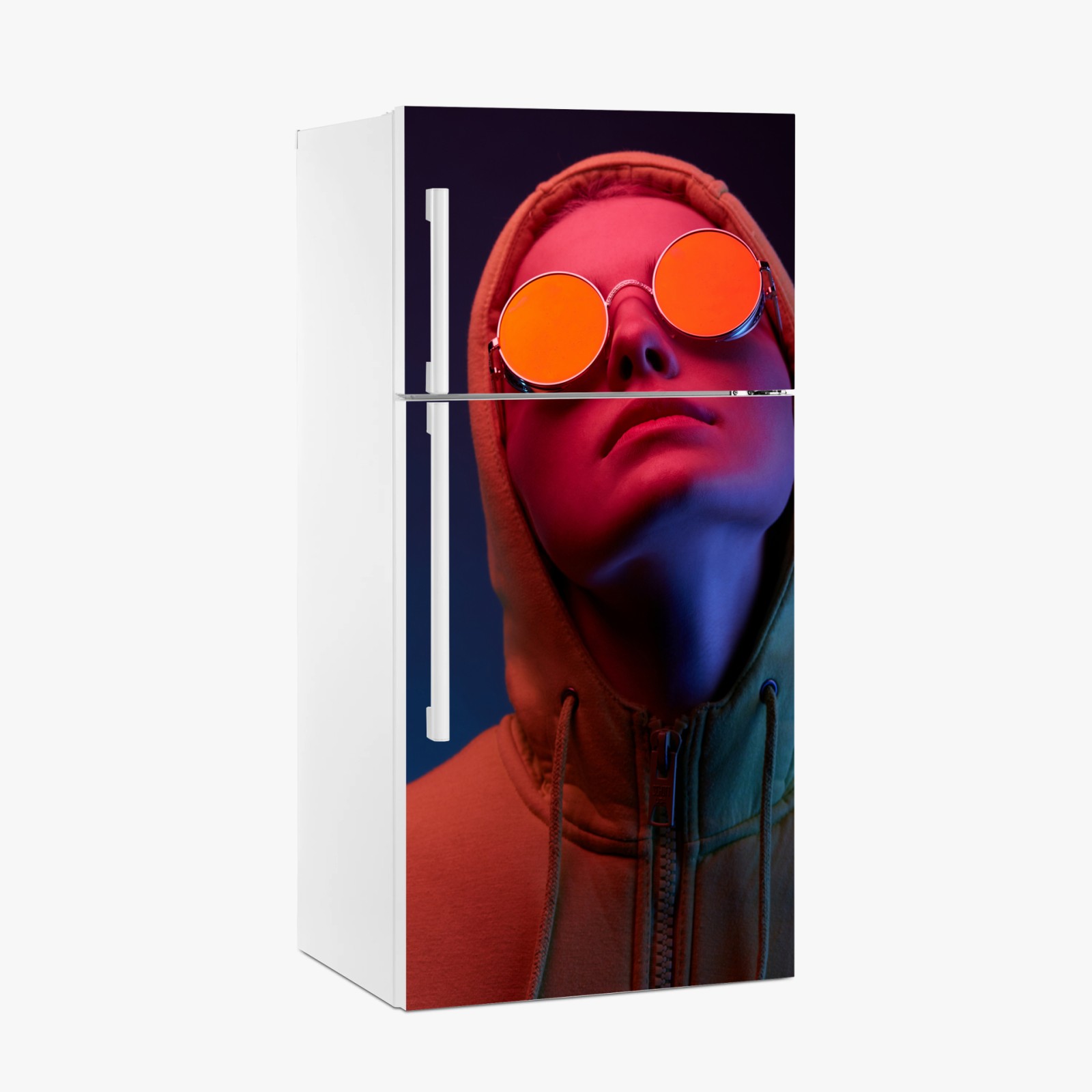 Kühlschrankaufkleber Neon-porträt mit runden sonnenbrillen