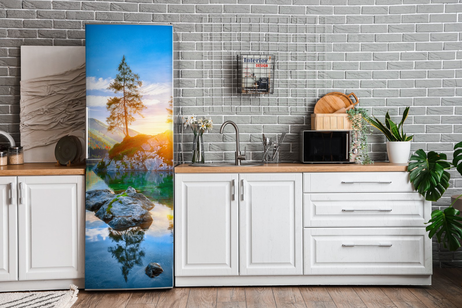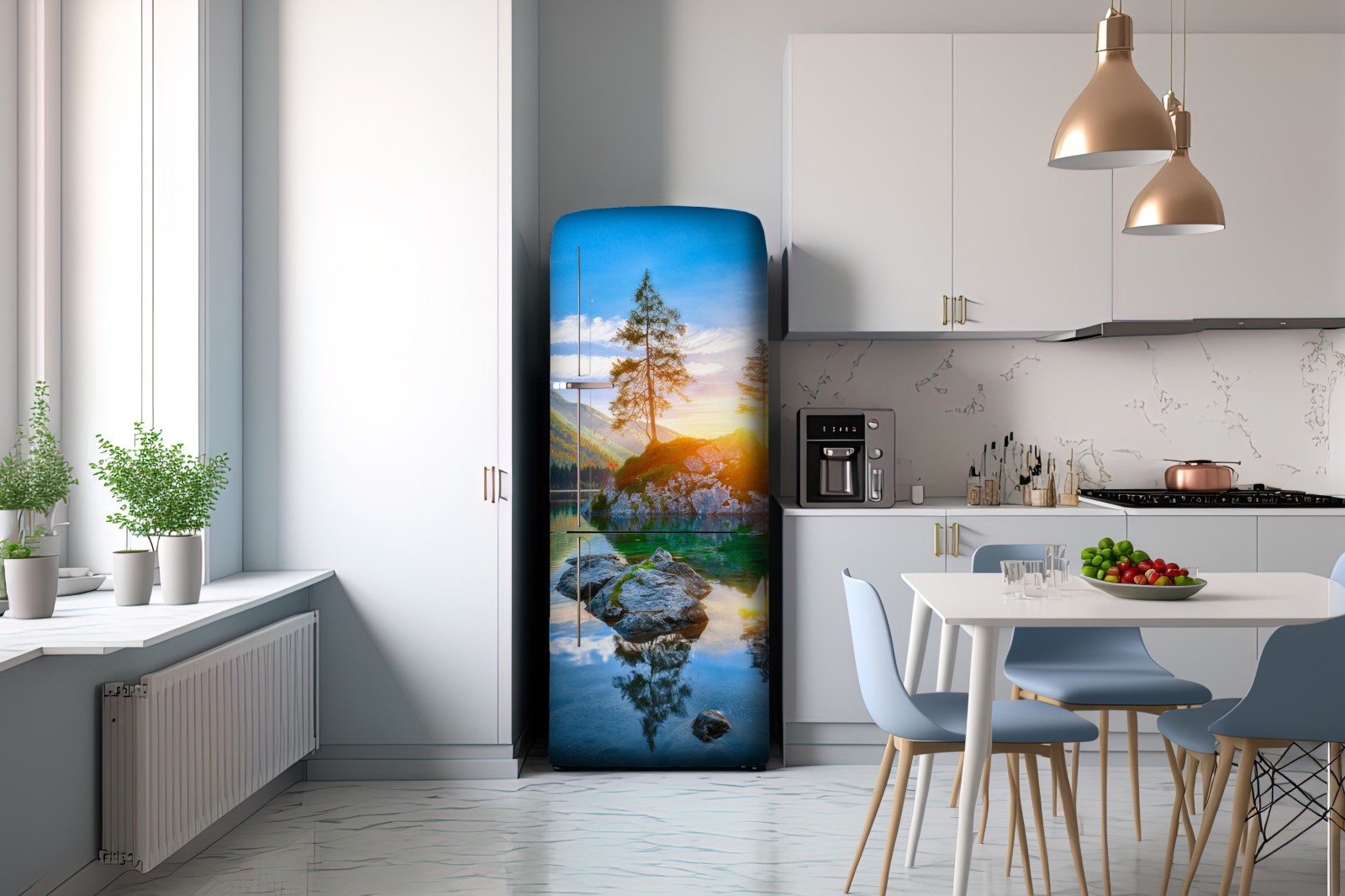 Kühlschrankaufkleber sonnenuntergang über Hintersee felseninsel