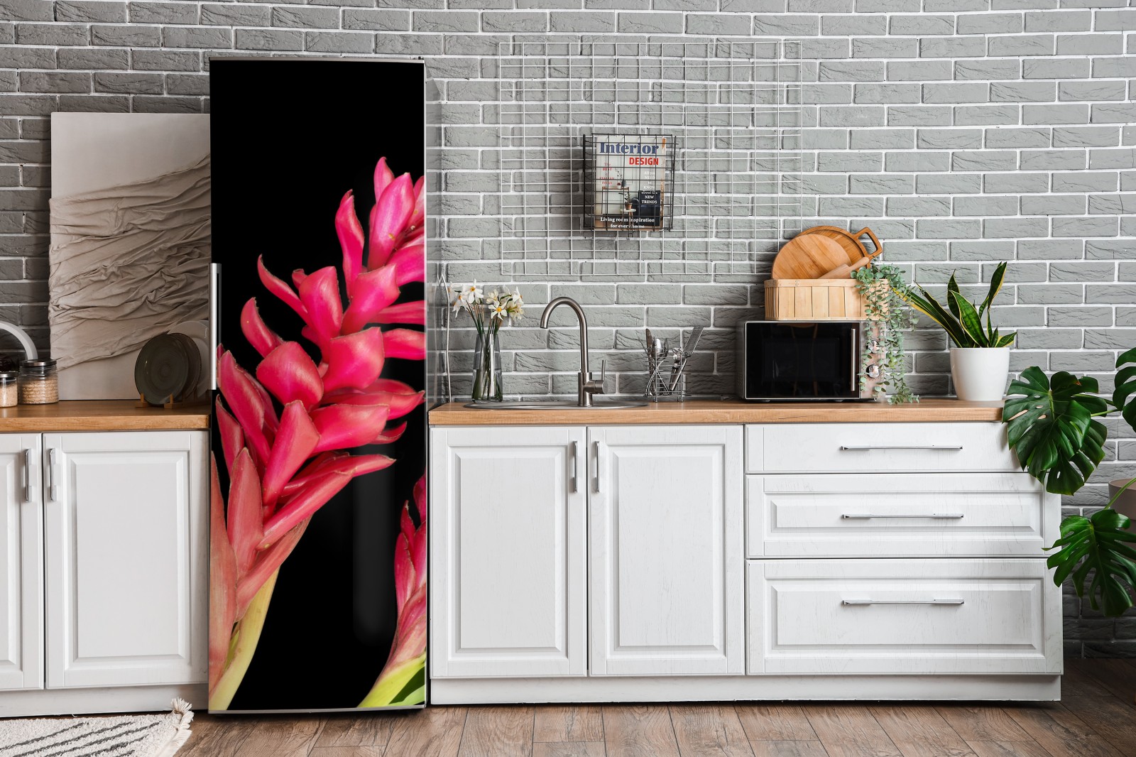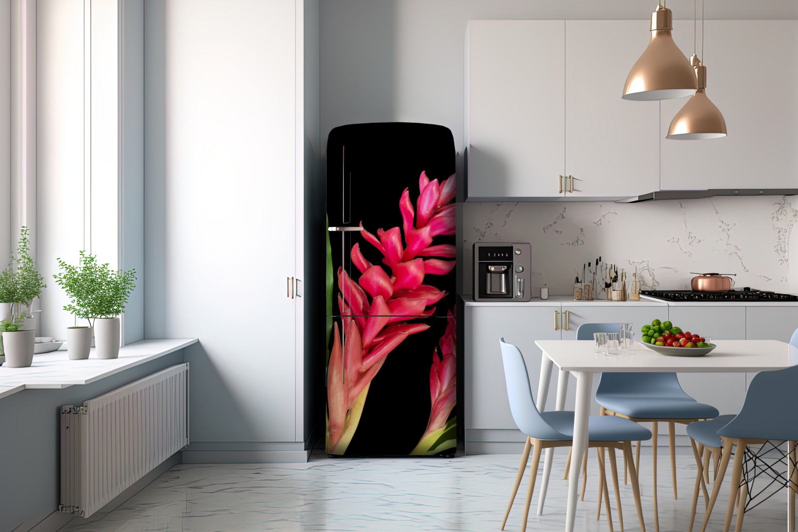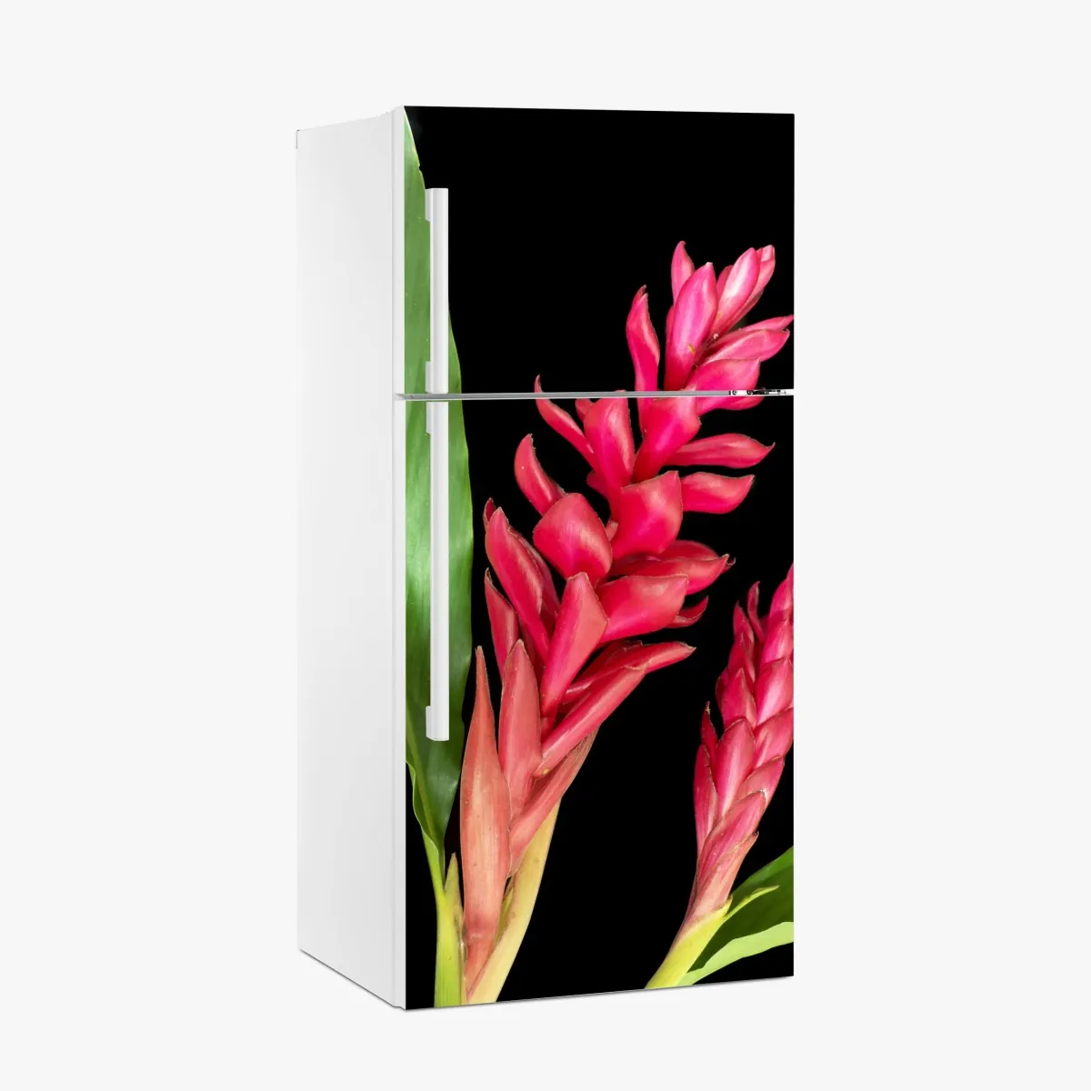 Kühlschrankaufkleber leuchtende zier-ingwer-blüte auf schwarzem hintergrund