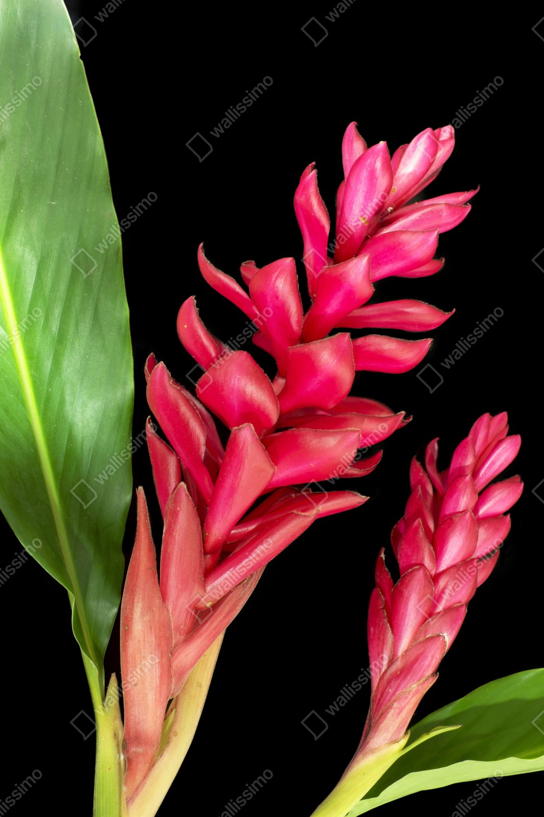 Bringen Sie tropische Eleganz in Ihr Zuhause mit einer intensiven Nahaufnahme einer zier-ingwer-blüte vor dramatischem schwarzem Hintergrund.