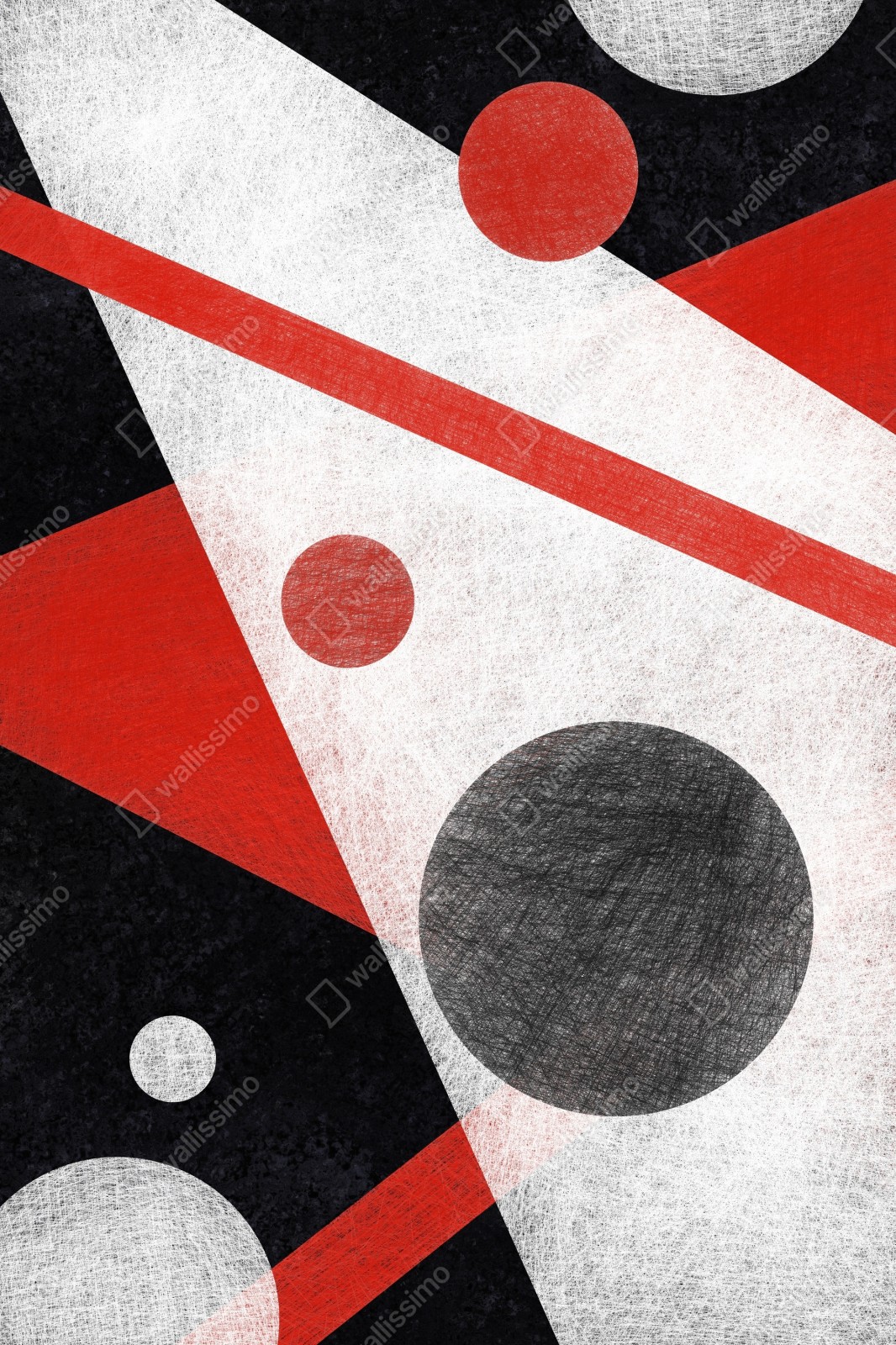 Verleihen Sie Ihrem Raum eine kräftige geometrische Komposition in intensiven Rot-, Schwarz- und Weißtönen, perfekt für moderne Innenräume.