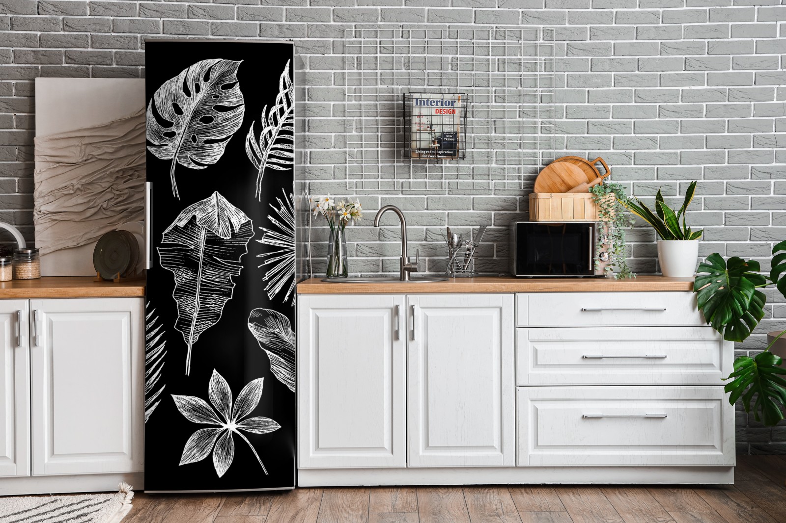 Verleihen Sie Ihrem Raum eine moderne Note mit einem minimalistischen, schwarz-weißen Blattprint im handgezeichneten Stil.
