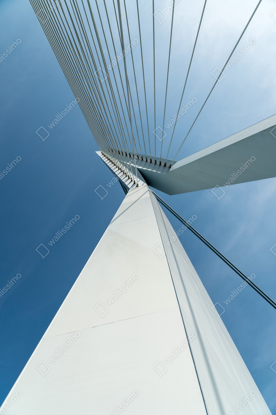 Verleihen Sie Ihrem Raum Ausdruck mit diesem modernen Blick auf einen Brückenpylon, bei dem klare Geometrie und beruhigender blauer Himmel einen architektonischen Fokus schaffen.