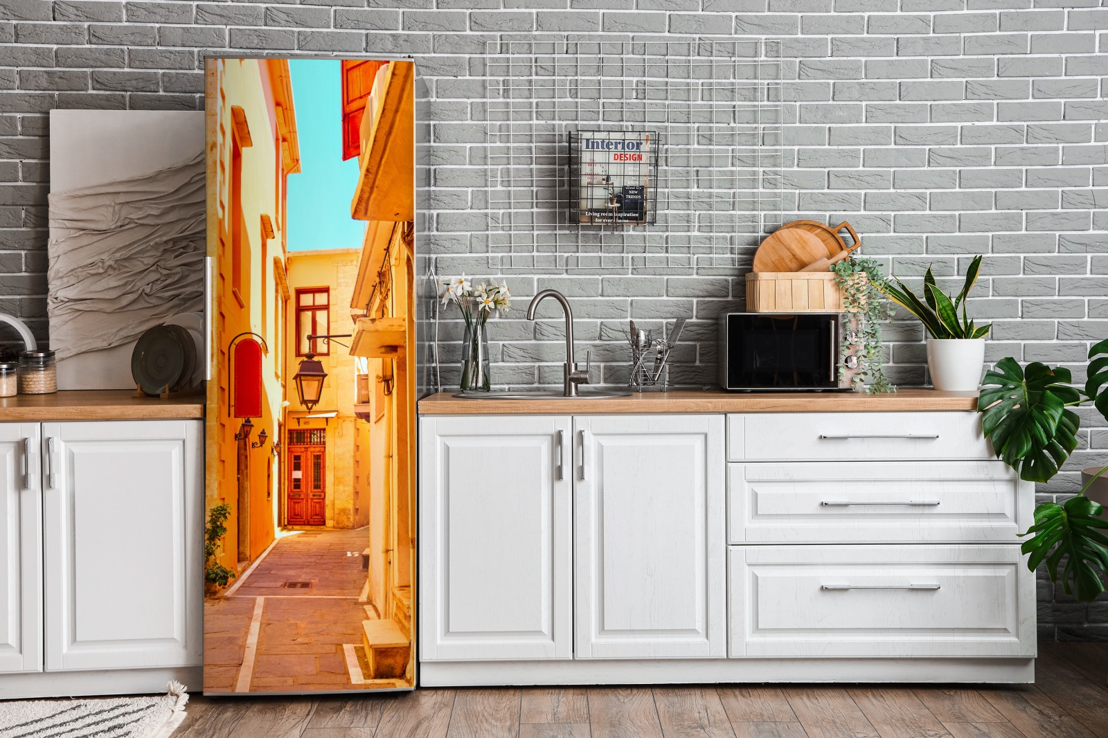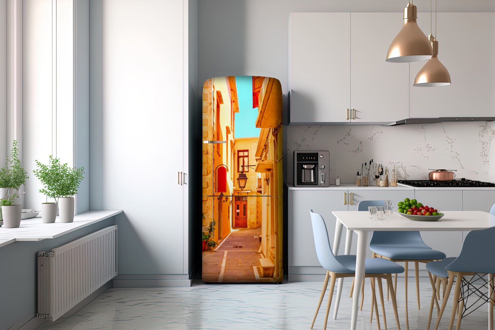 Kühlschrankaufkleber sonnige gelbe gasse in Rethymno, Kreta
