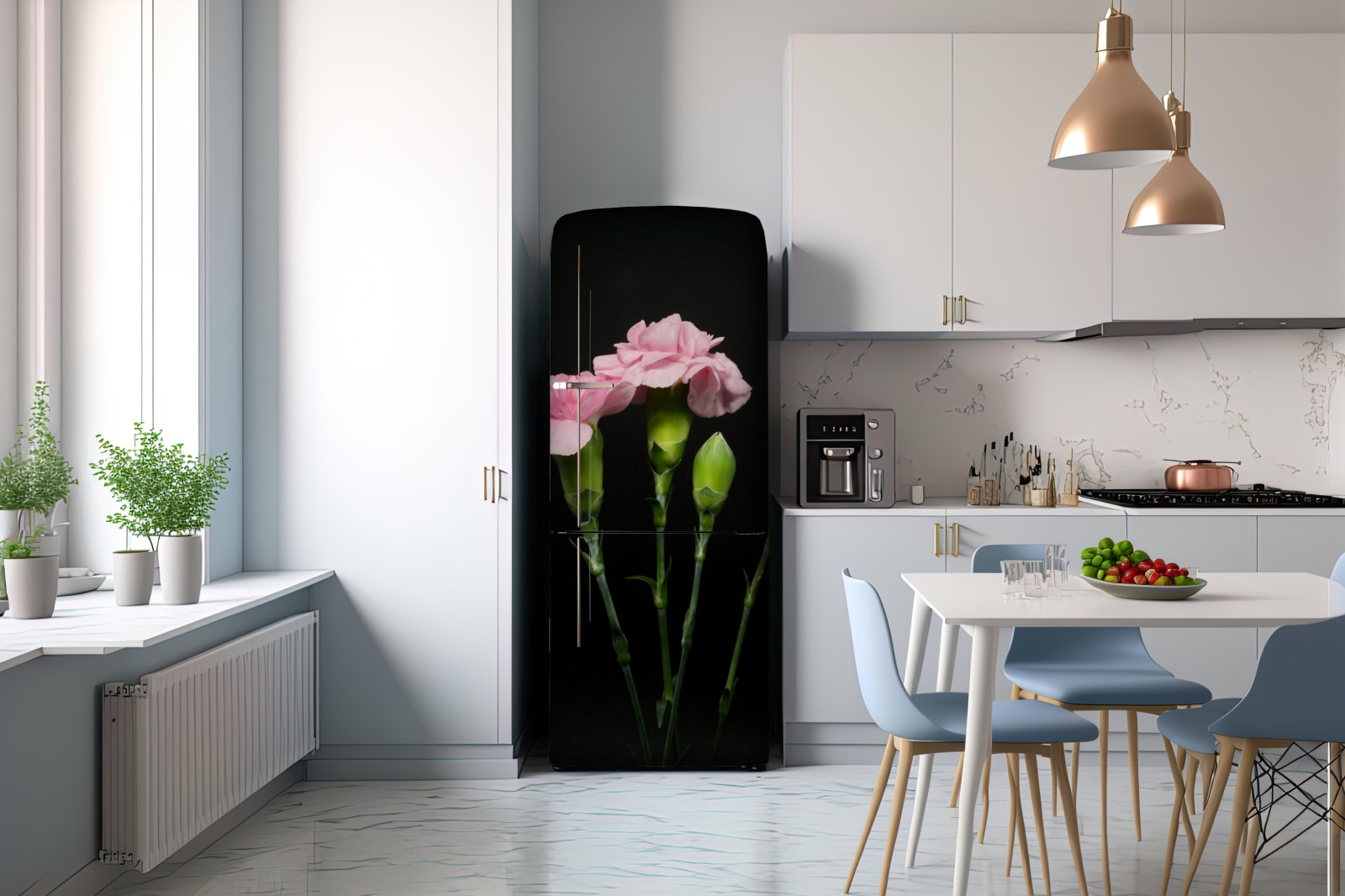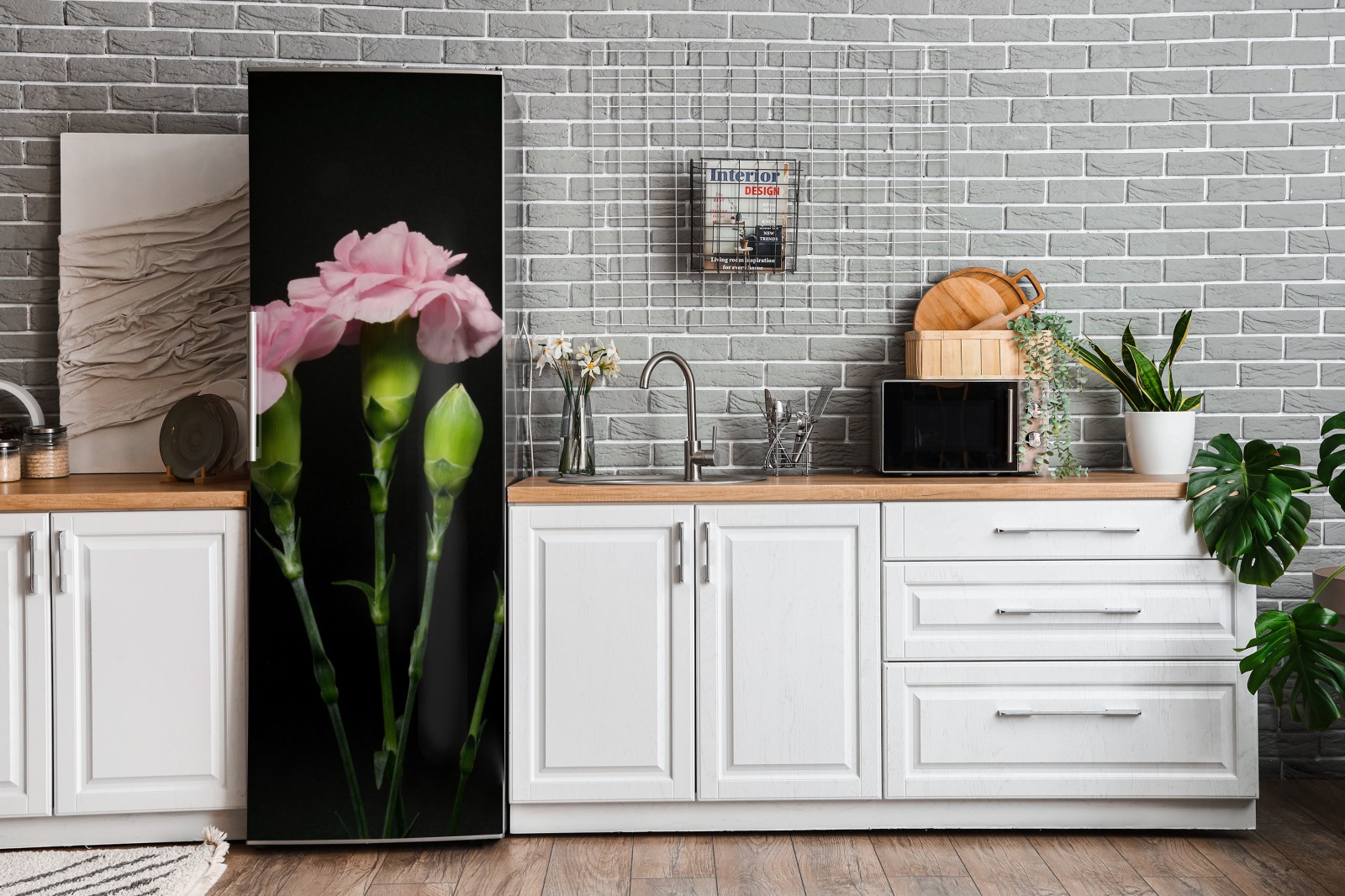 Kühlschrankaufkleber rosa nelken vor schwarzem hintergrund
