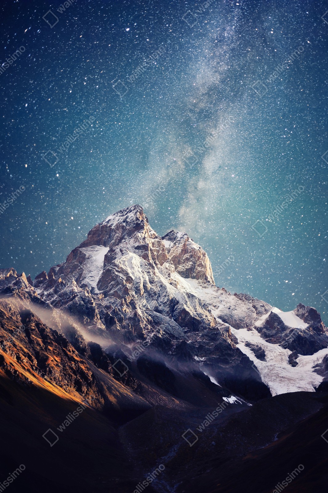 Bringen Sie die Ruhe eines sternenklaren Himmels und den majestätischen Ushba in Ihr Zuhause mit diesem friedlichen Foto.