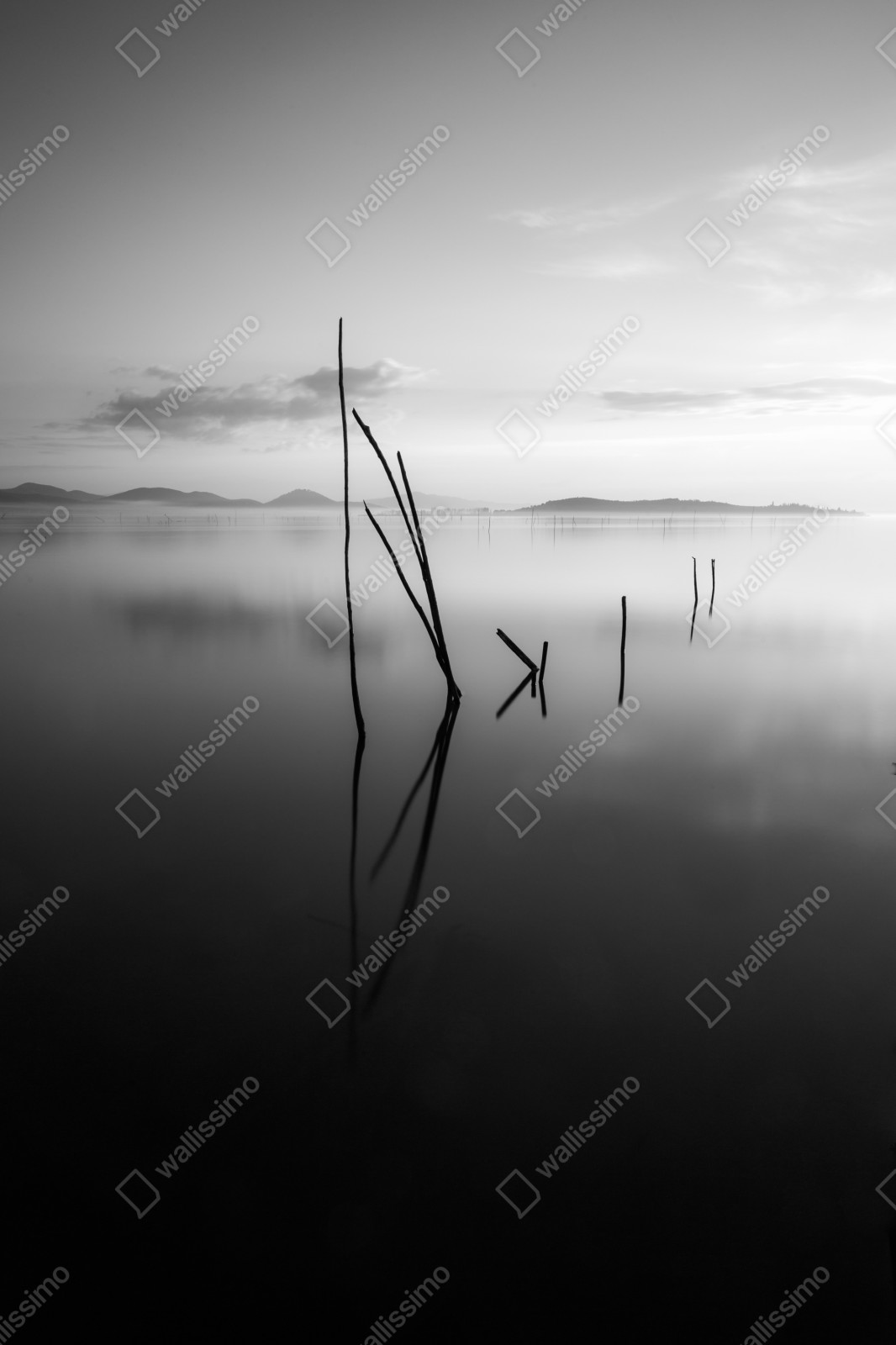 Bringen Sie Ruhe in den Raum mit diesem minimalistischen schwarzweiß-see und zarten Spiegelungen.
