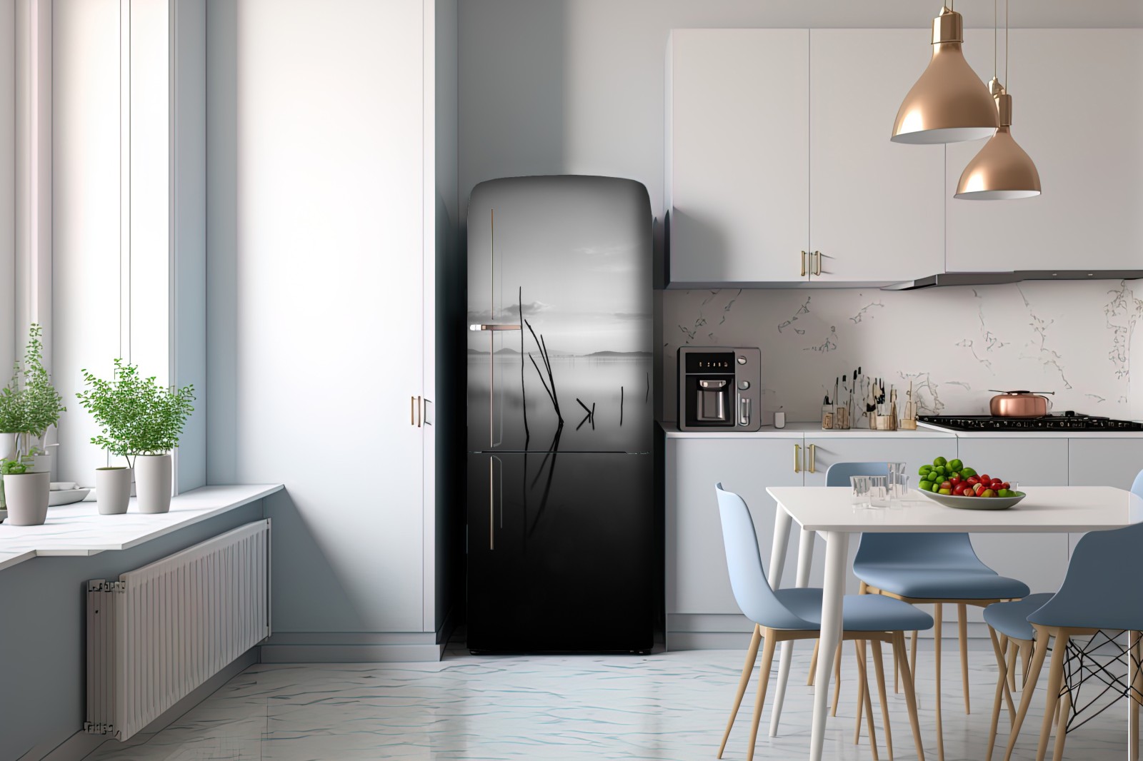 Kühlschrankaufkleber ruhiger monochromer see mit reflexionen