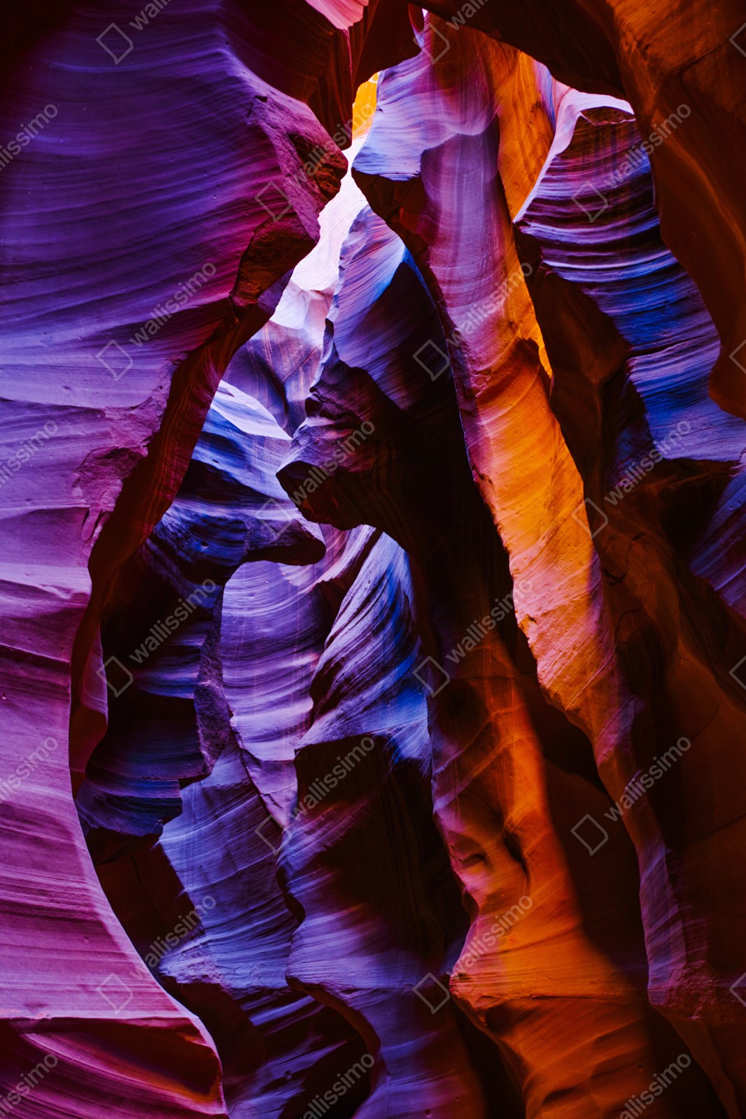 Erleben Sie das atemberaubende Zusammenspiel von Licht und Farbe an den geformten Sandsteinwänden, perfekt, um Wärme und Tiefe in jeden Raum zu bringen.