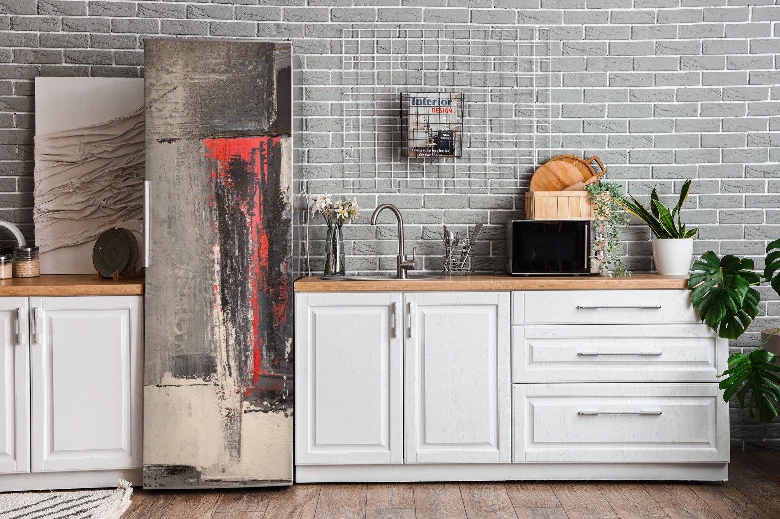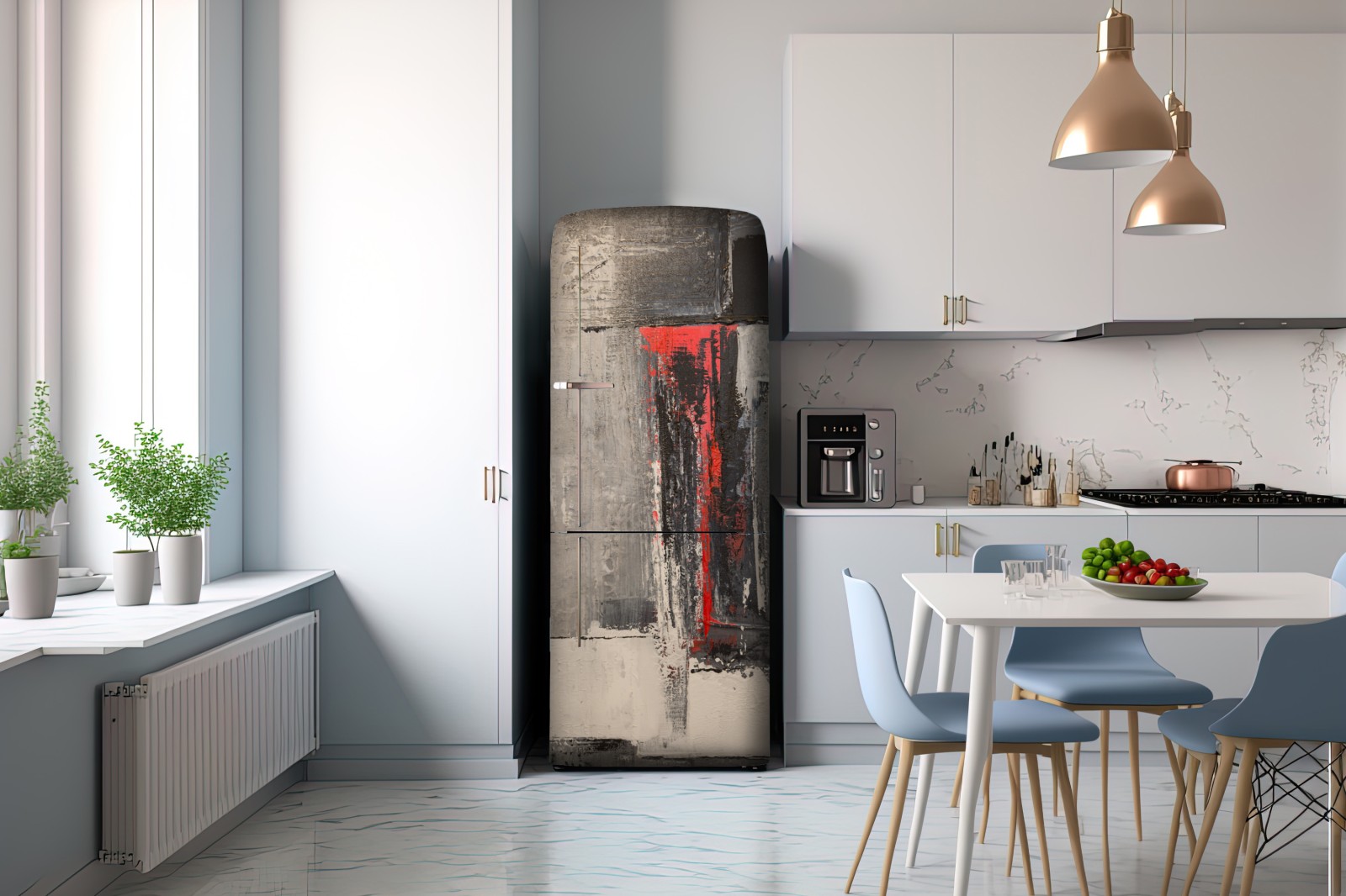 Kühlschrankaufkleber strukturierte abstraktion mit rotem akzent