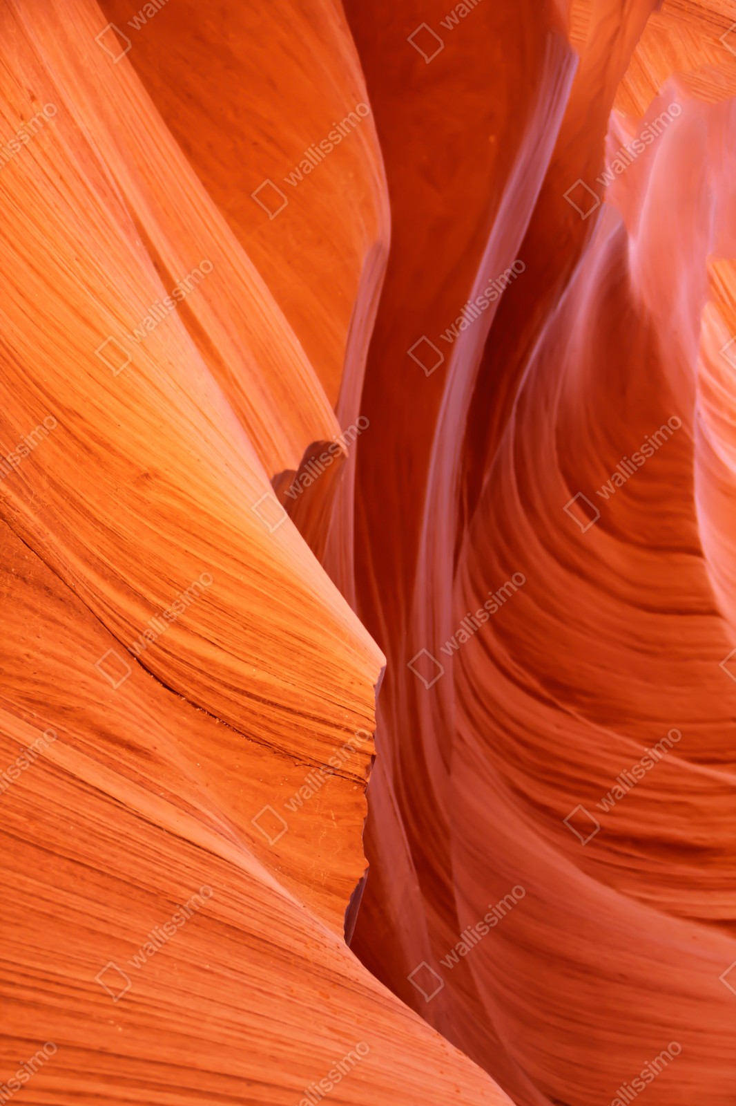 Entdecken Sie die warmen, fließenden Linien des geformten Sandsteins in diesem beeindruckenden abstrakten Landschaftsbild, ideal um jedem Raum natürliche Textur und warme Farbtöne zu verleihen.