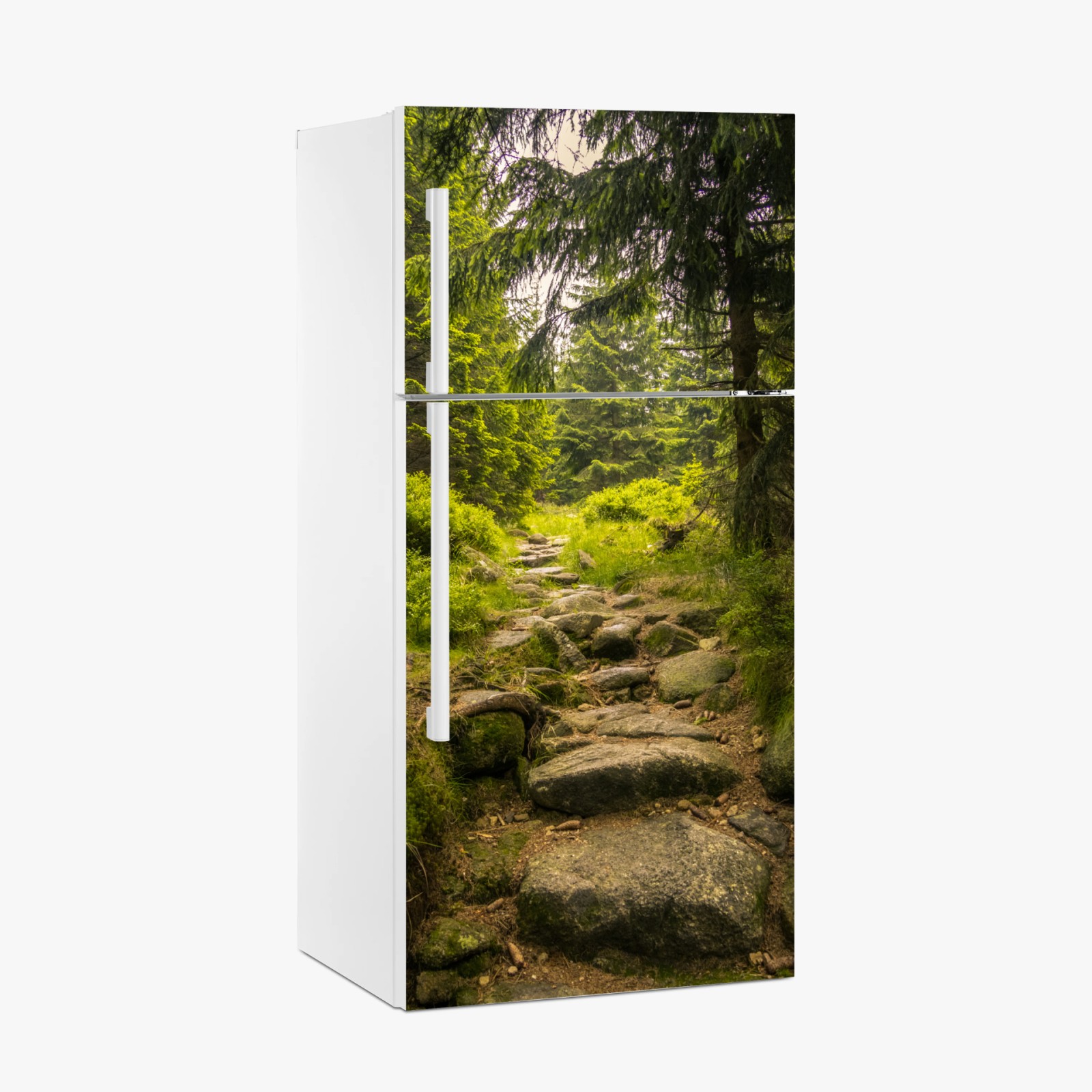 Kühlschrankaufkleber Ruhiger waldweg durch nadelwald