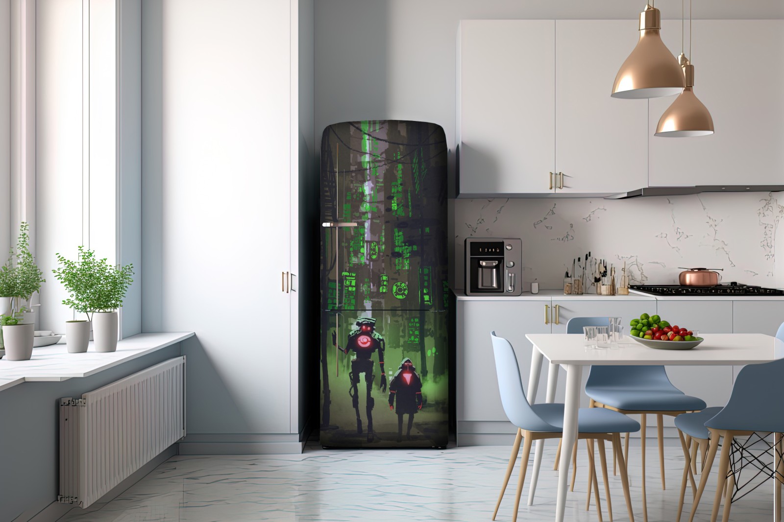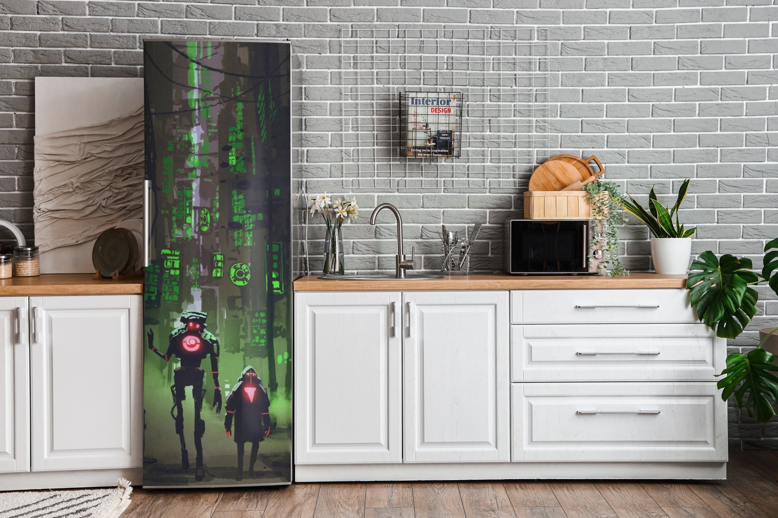 Kühlschrankaufkleber roboter in der neon gasse