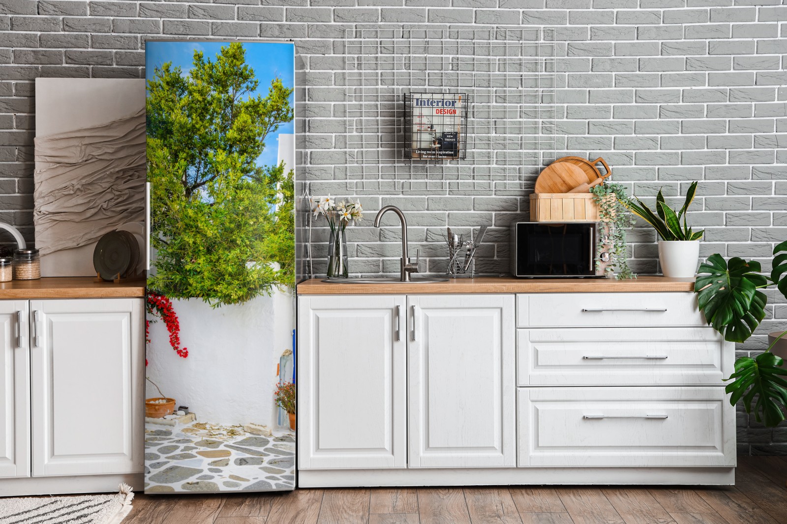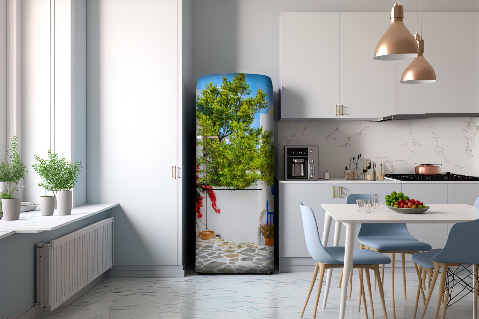 Kühlschrankaufkleber sonniger mediterraner innenhof mit bougainvillea
