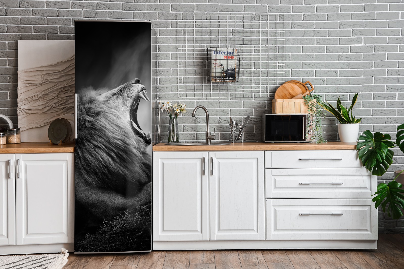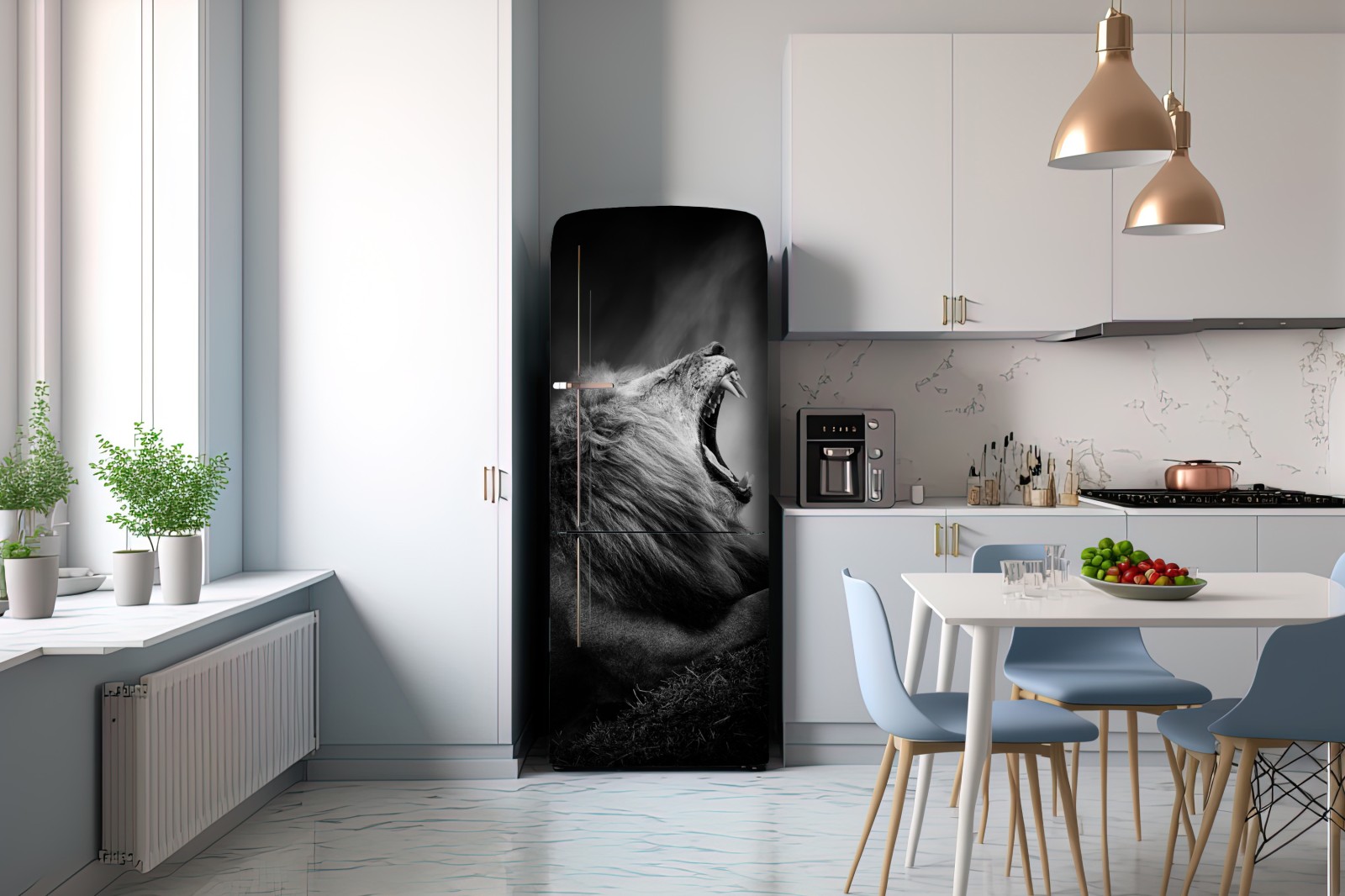 Kühlschrankaufkleber majestätischer brüllender löwe in monochrom