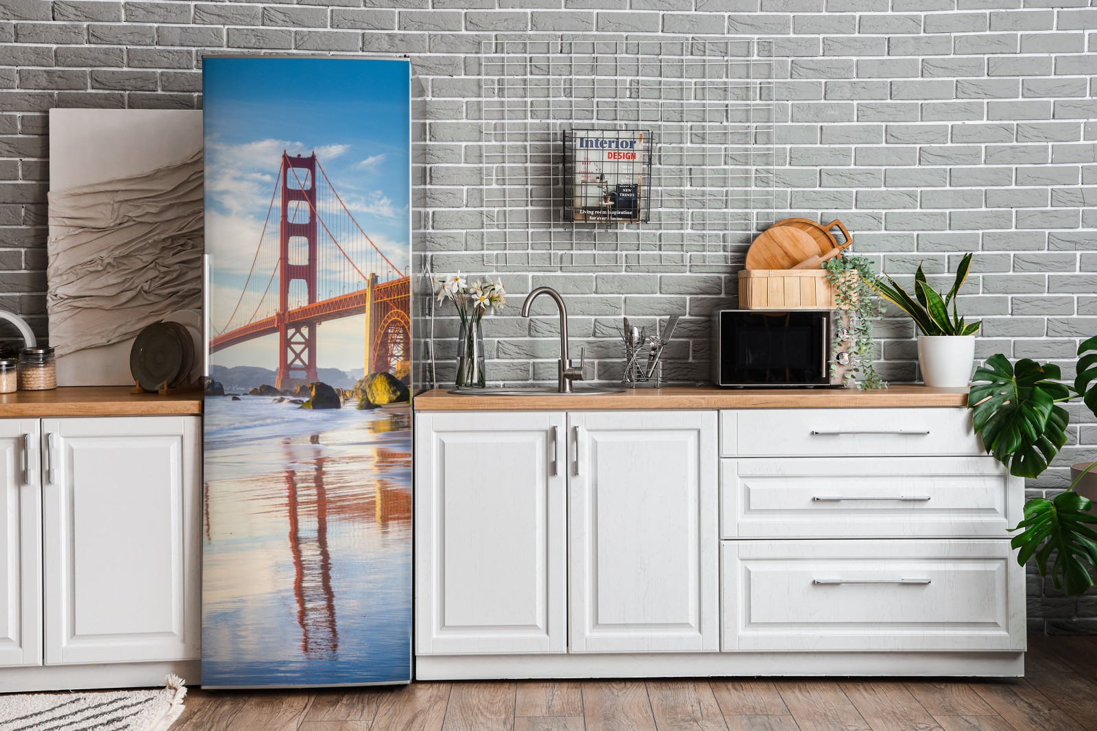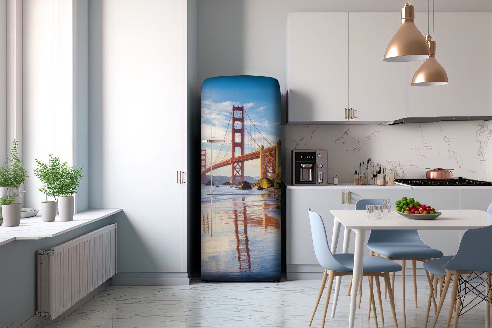 Kühlschrankaufkleber Golden Gate Bridge reflektiert am strand