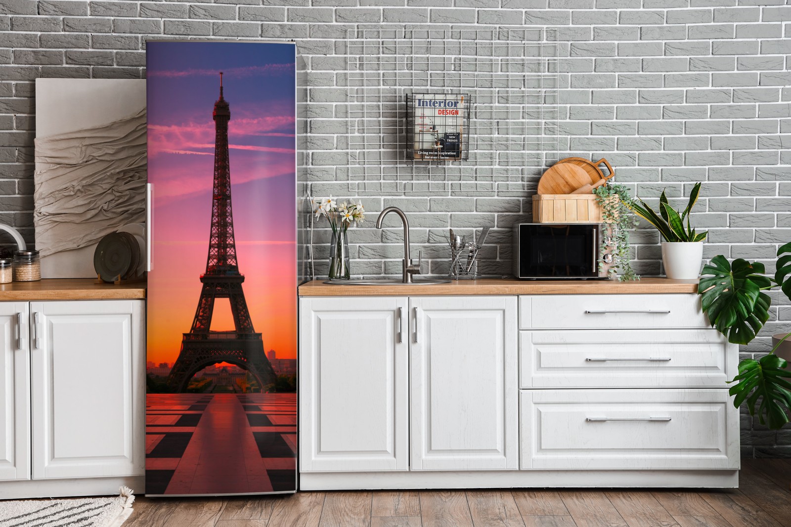 Kühlschrankaufkleber sonnenaufgang über dem Eiffelturm
