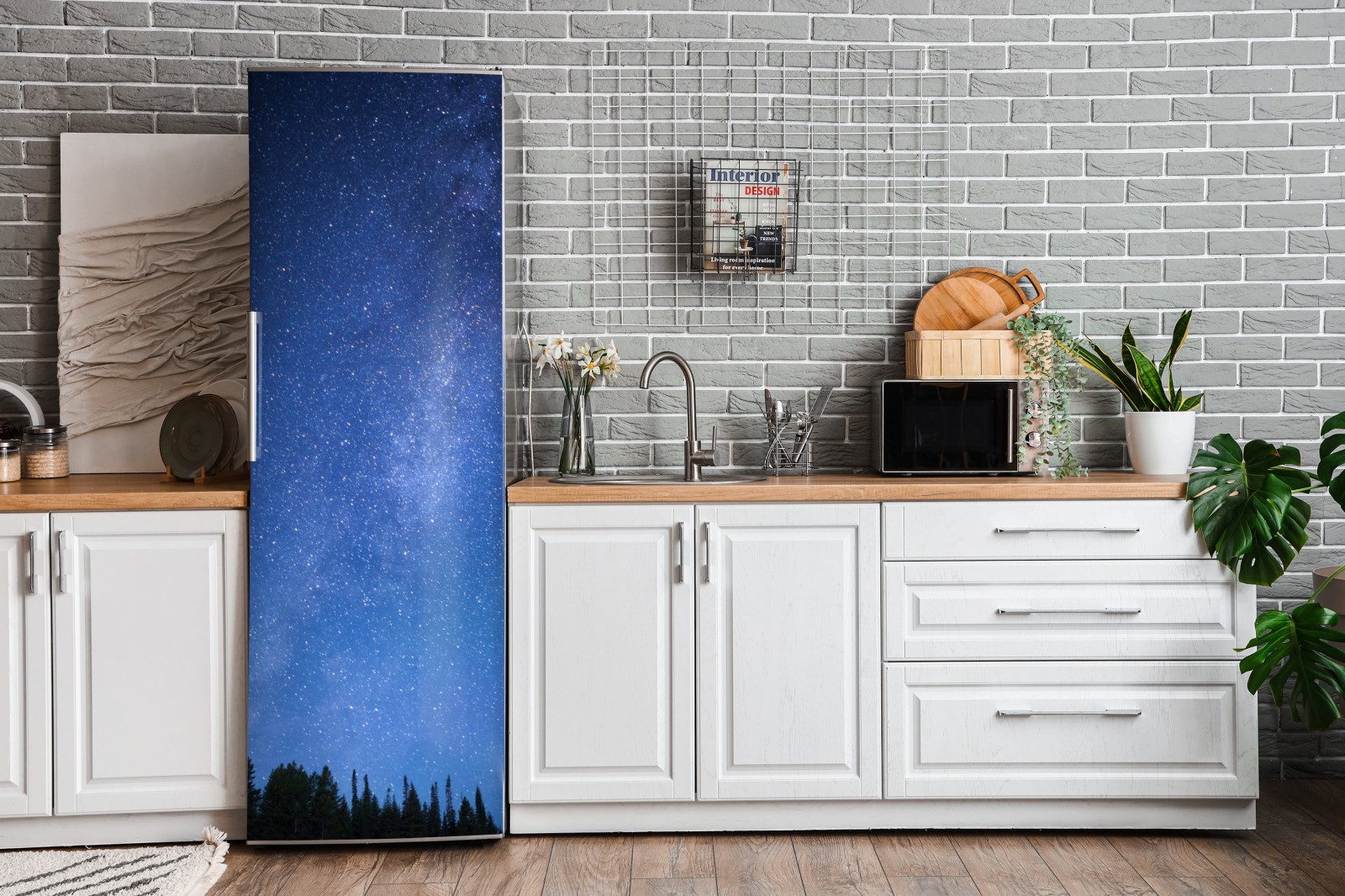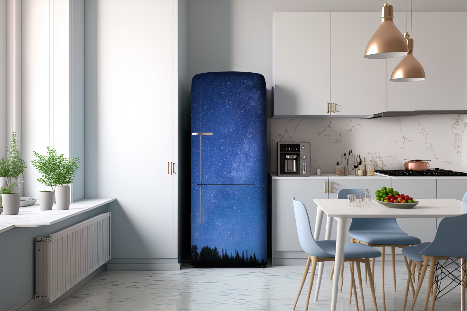 Kühlschrankaufkleber sternenklare Milchstraße über dem Wald